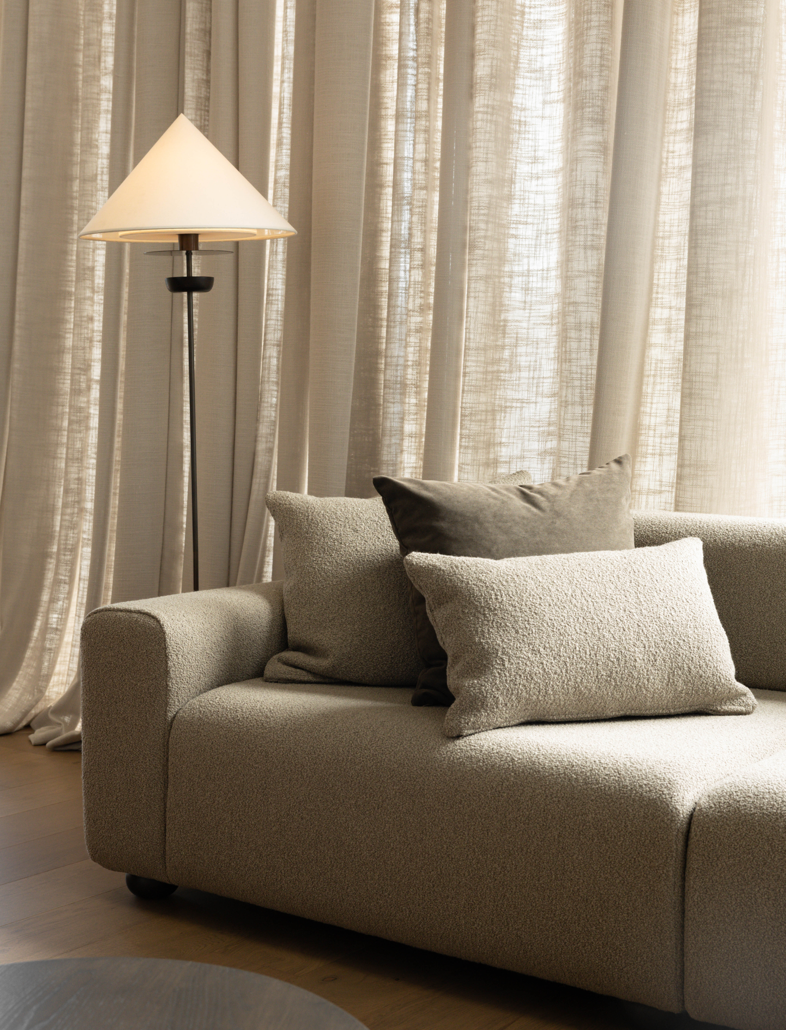 Upholstered pieces are crafted with interlaced elasticised webbing, providing a long-lasting, supportive base. Various foam grades are carefully selected to achieve the ideal comfort level, while feather fibre adds a soft, sink-in feel to pieces that call for a more relaxed experience. This combination ensures both durability and a high-quality, comfortable seating experience.