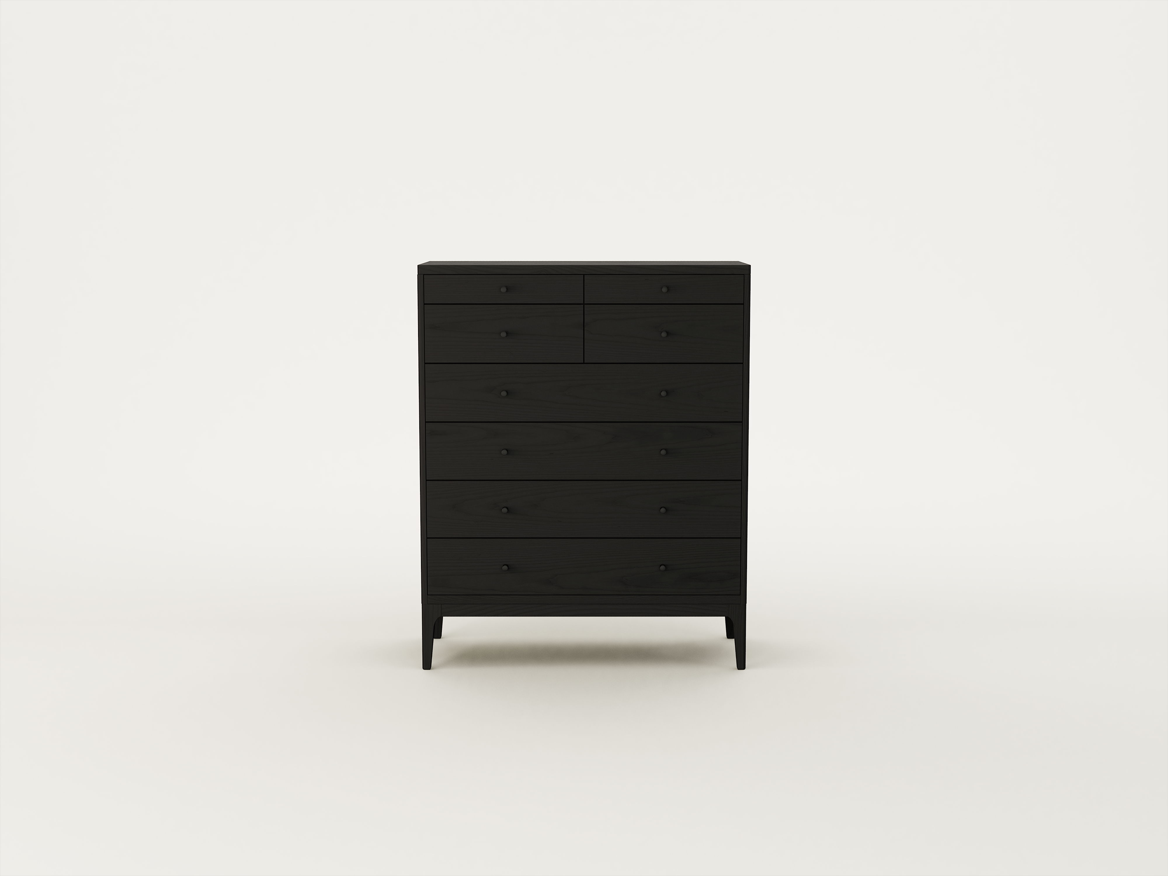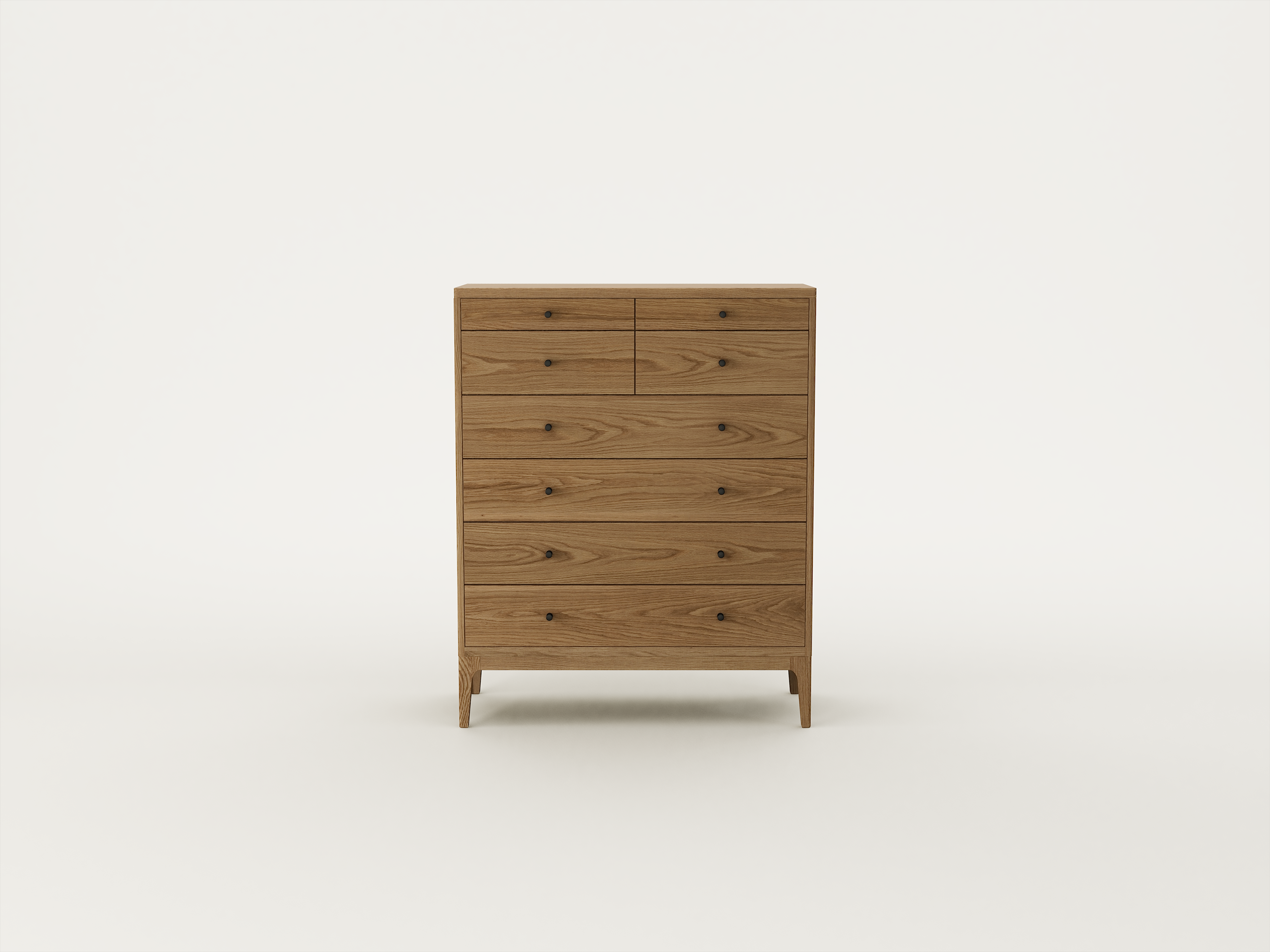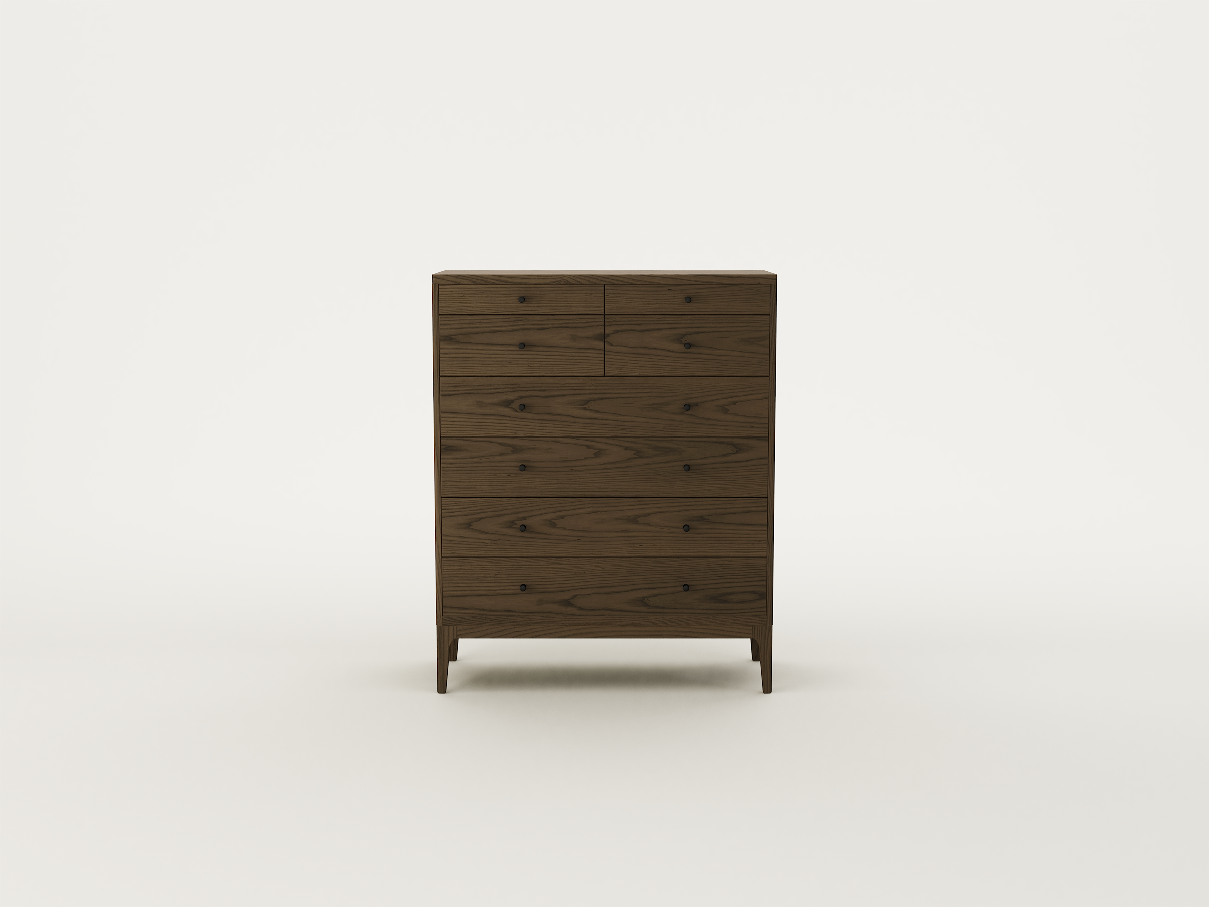 Minimal & elegant, Brooklyn offers a well-proportioned silhouette with tapered and bevelled legs. A refined eight drawer tallboy with timber and finish options to suit your space.