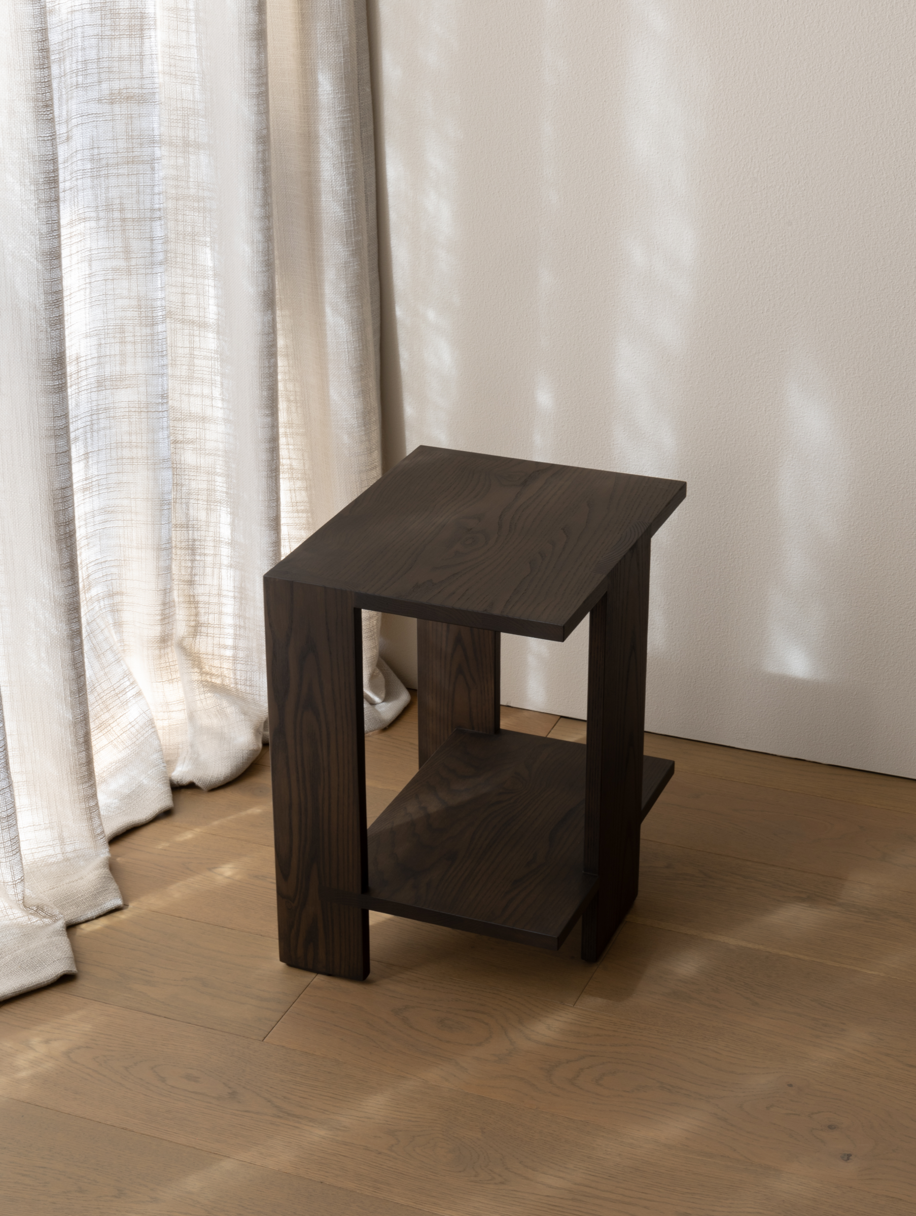 A geometric side table featuring strong lines and an asymmetrical form, Cardinal offers visual interest from all angles. Cardinal is suitable for both living and bedroom spaces.
