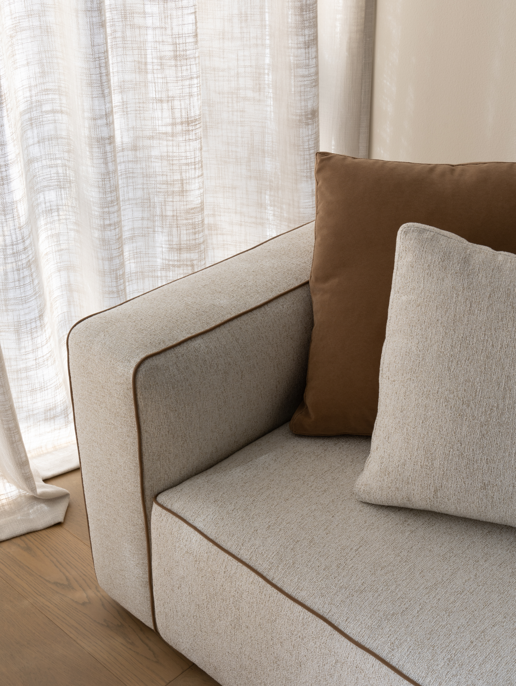Charly is a sophisticated modular sofa characterised by feature piping. Its versatile range of modules, from straight to asymmetrical and curved, allow for adaptable combinations, creating a tailored and distinctive appearance to suit any space. Designed for everyday use with low maintenance and supportive comfort.