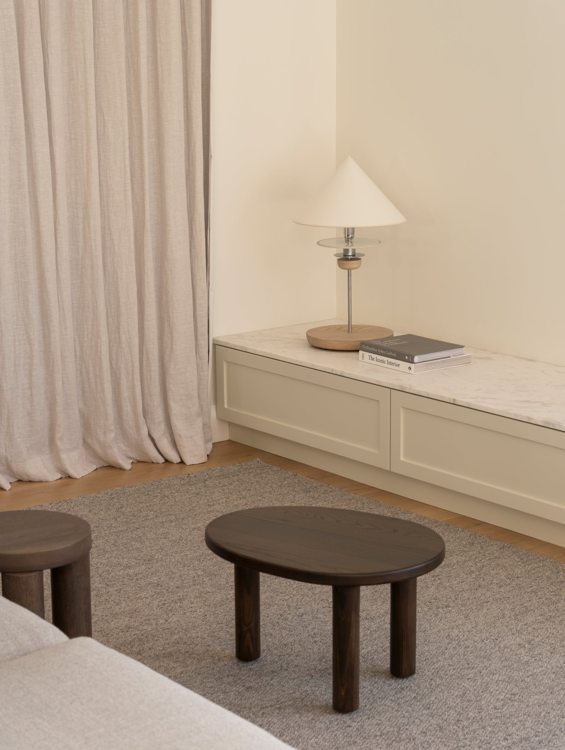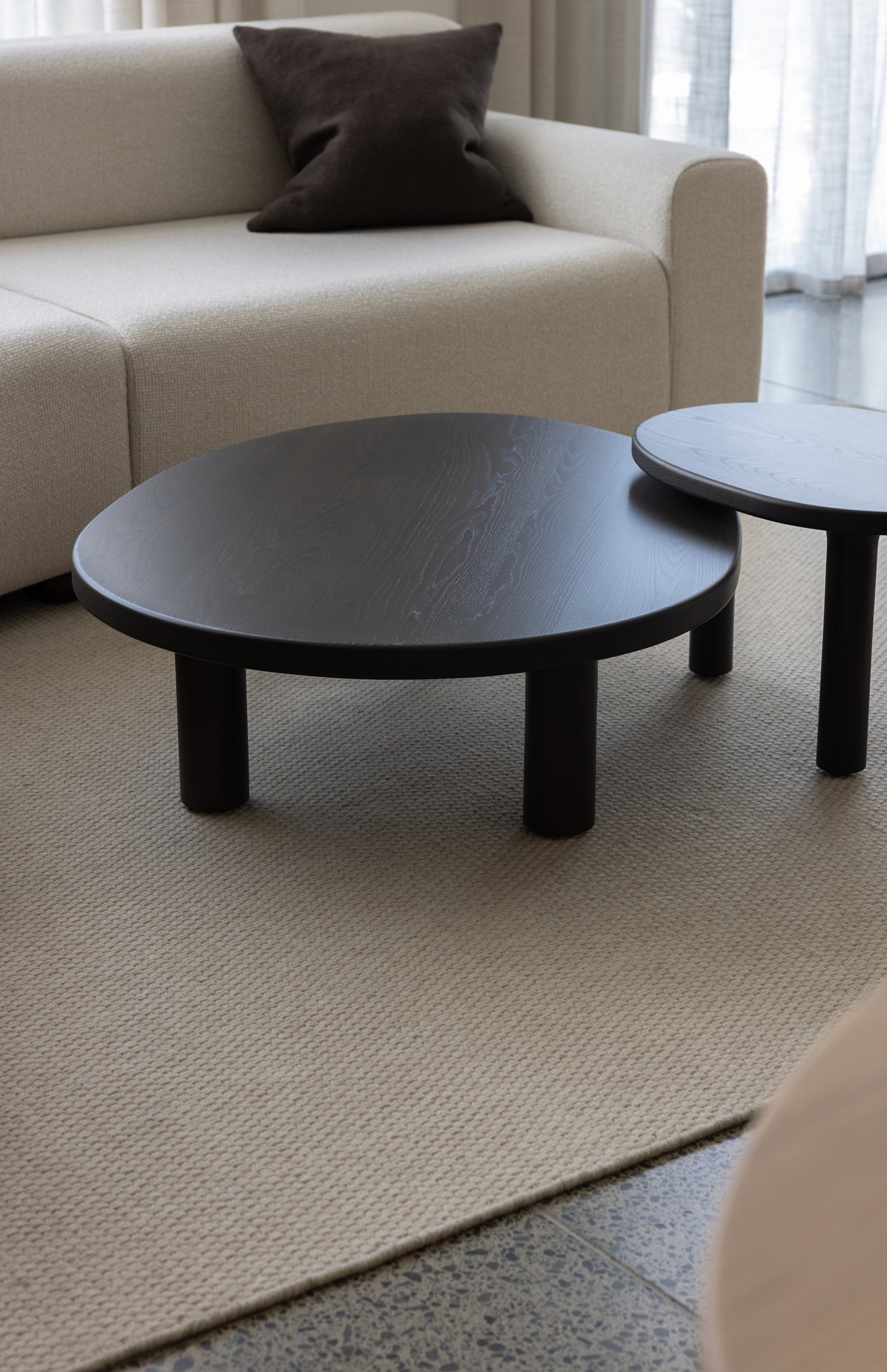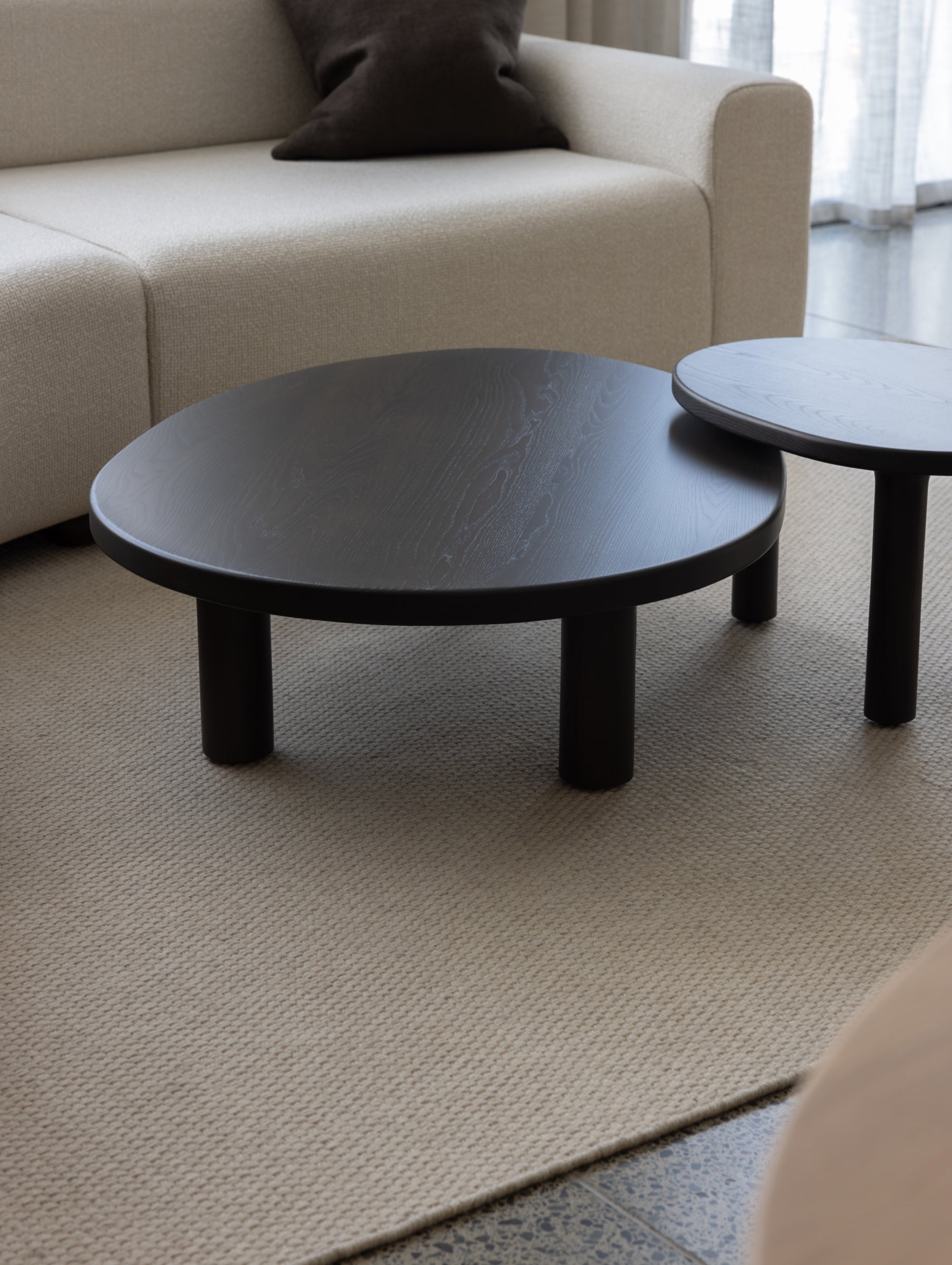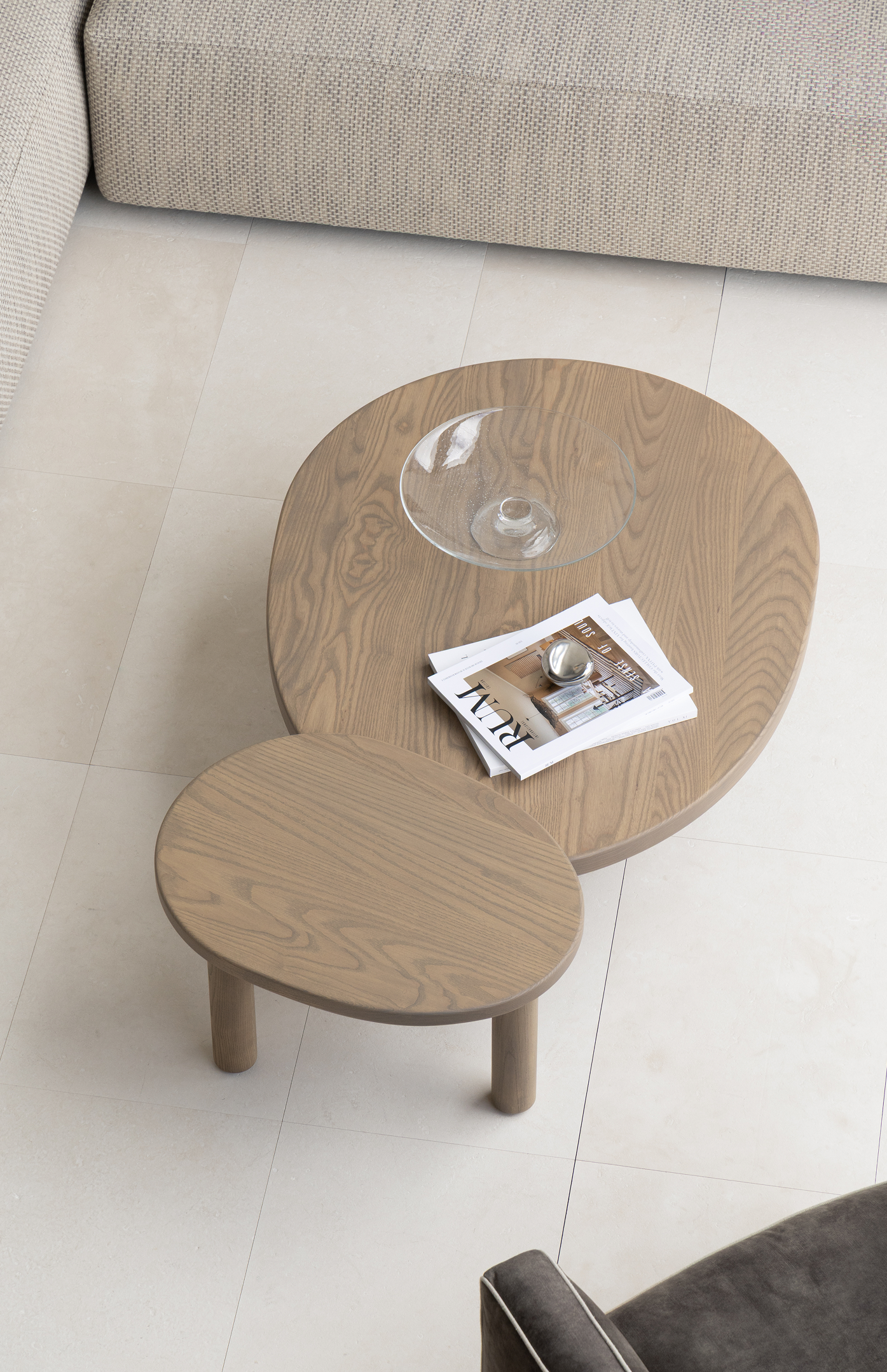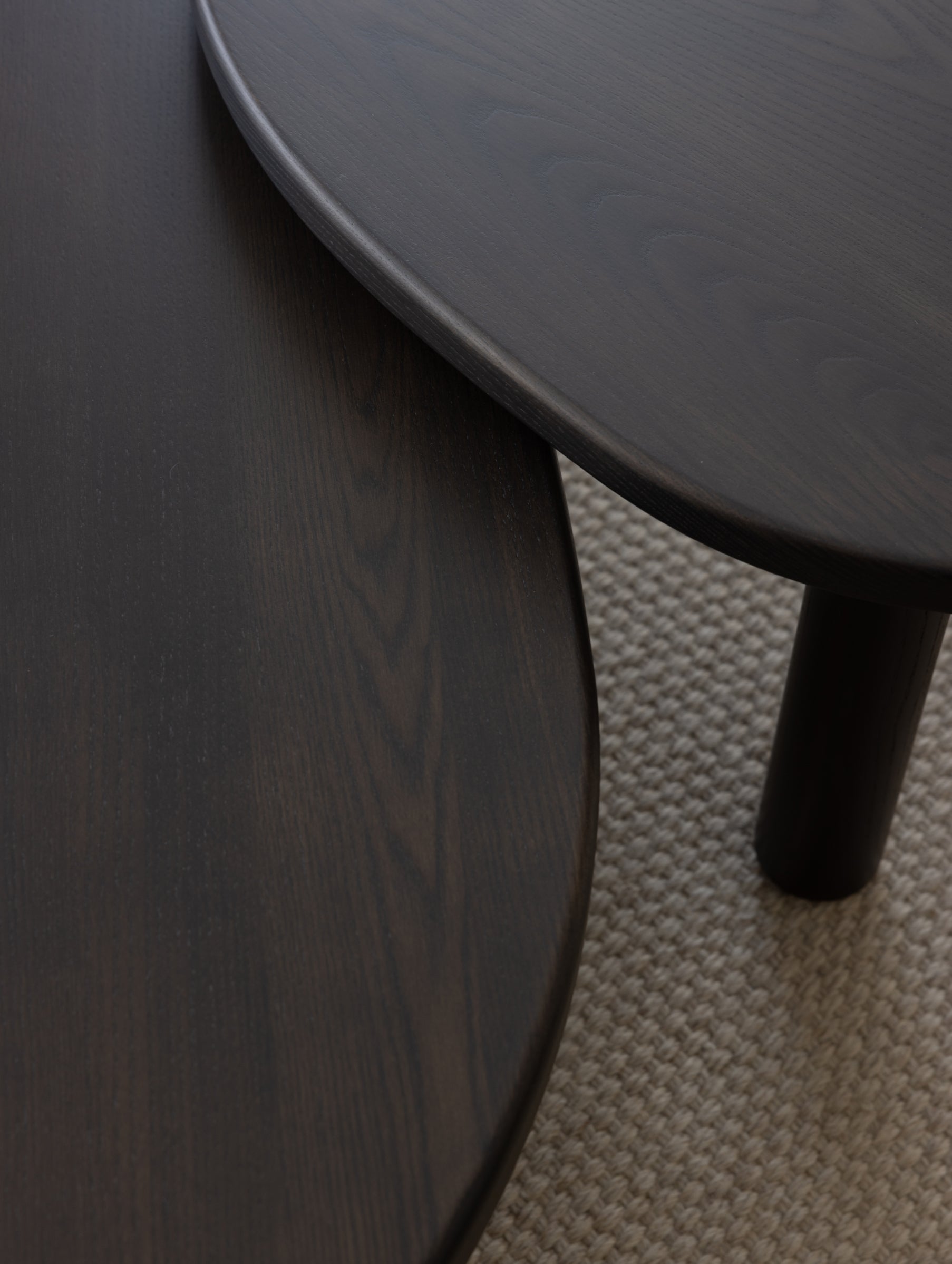 Asymmetrical in profile, the Contour nesting tables are an ode to the familiar nature of biological contours. A welcomed sense of lightness is created through the rounded legs and table top, connected by soft arcs.