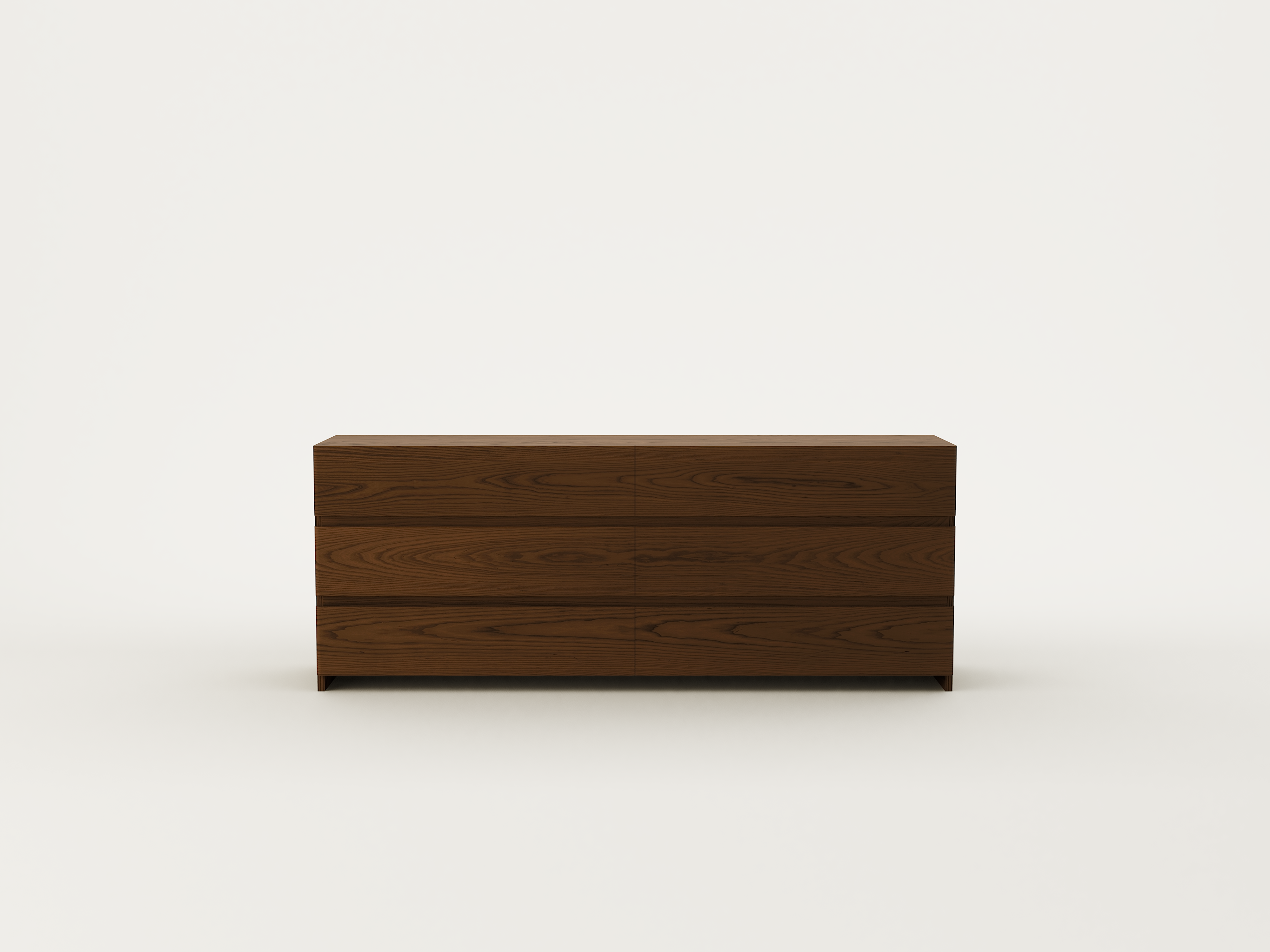 An honest expression of flat timber planes with contrasting softened recessions, Depot is a family of functional drawers and cabinets. A six-door sideboard designed for bedroom spaces.