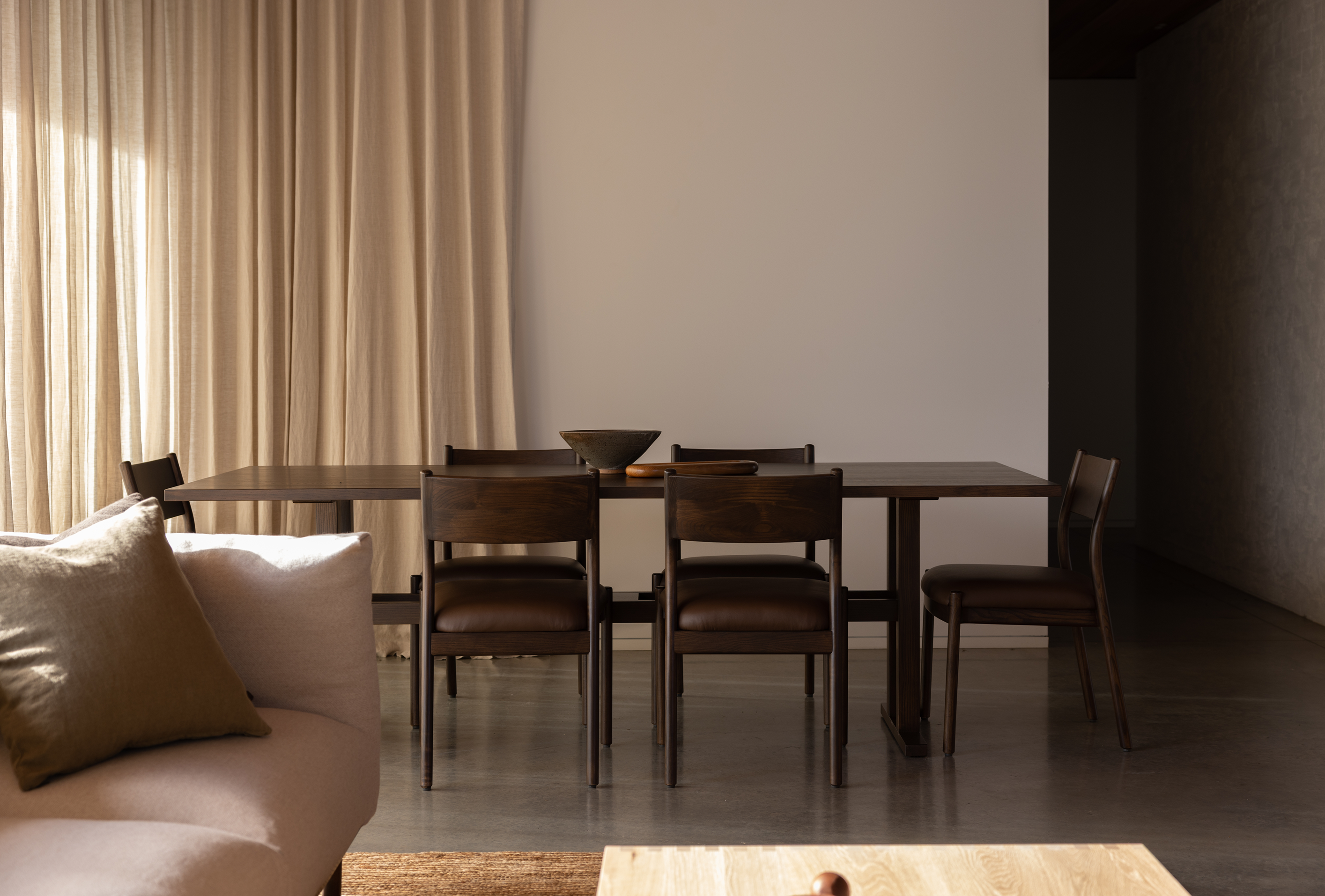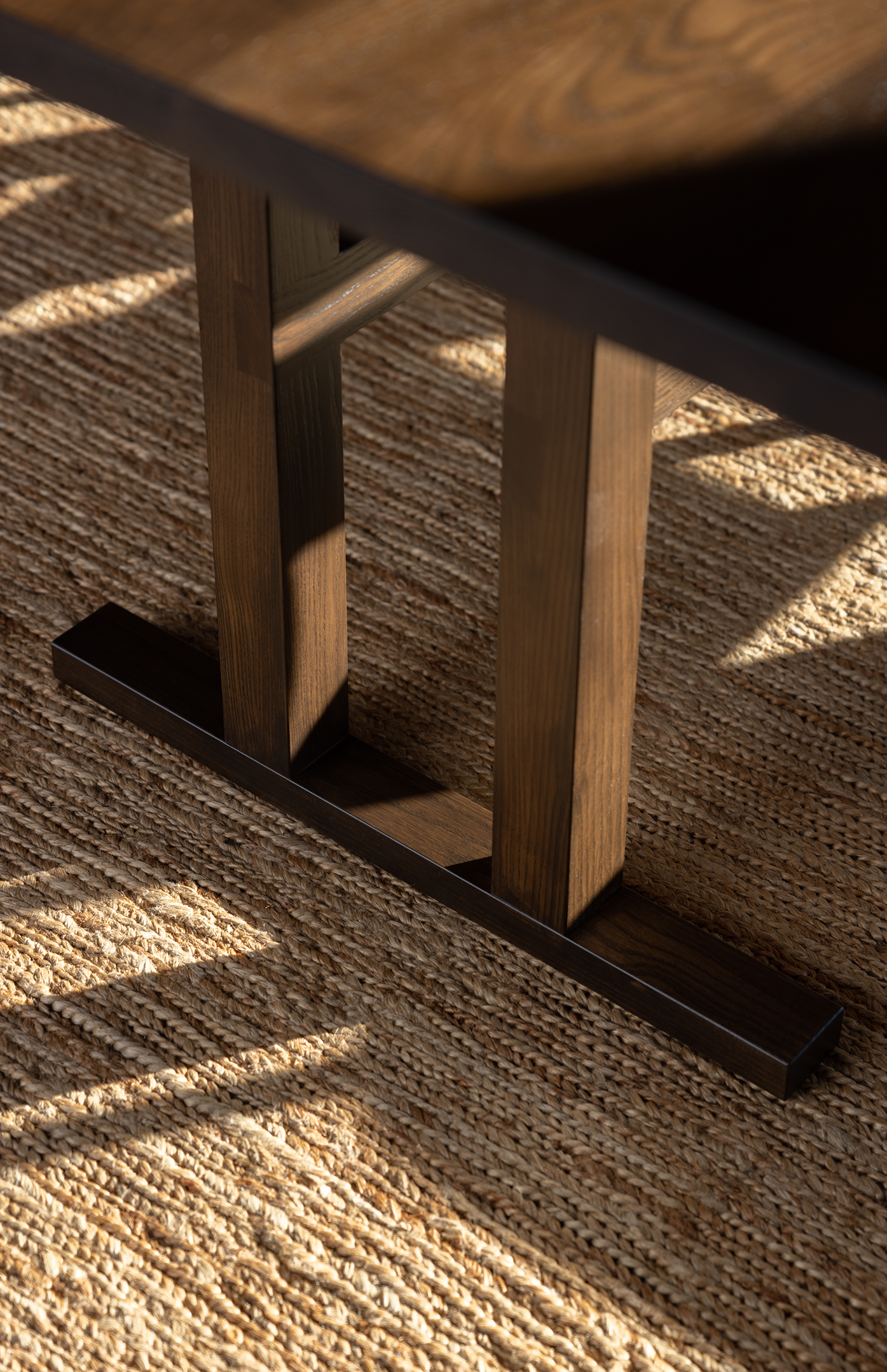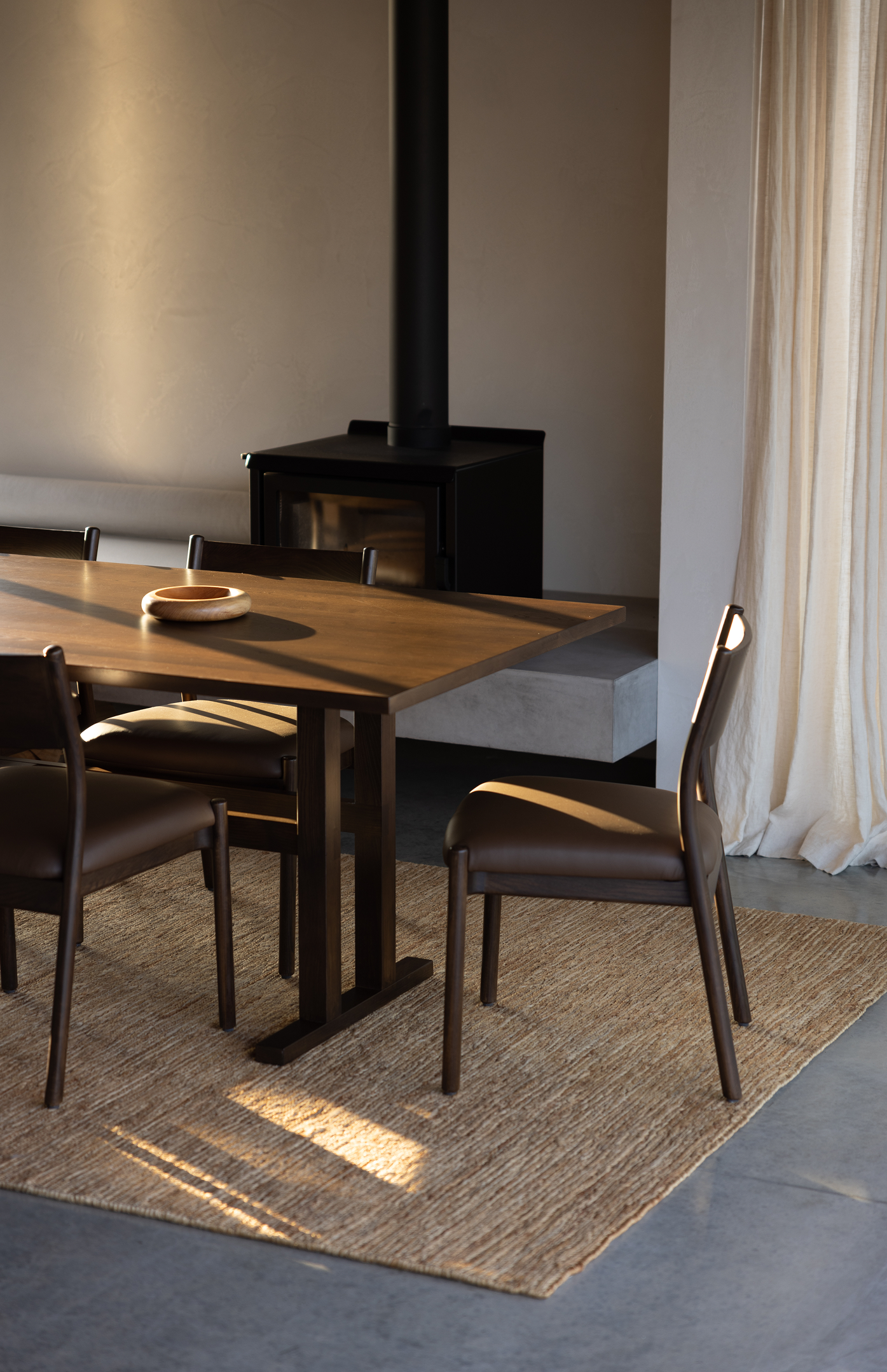 A linear dining table with subtle negative joinery, Dominion features vertical pedestal legs and simple junctions highlighting the strength of its construction.