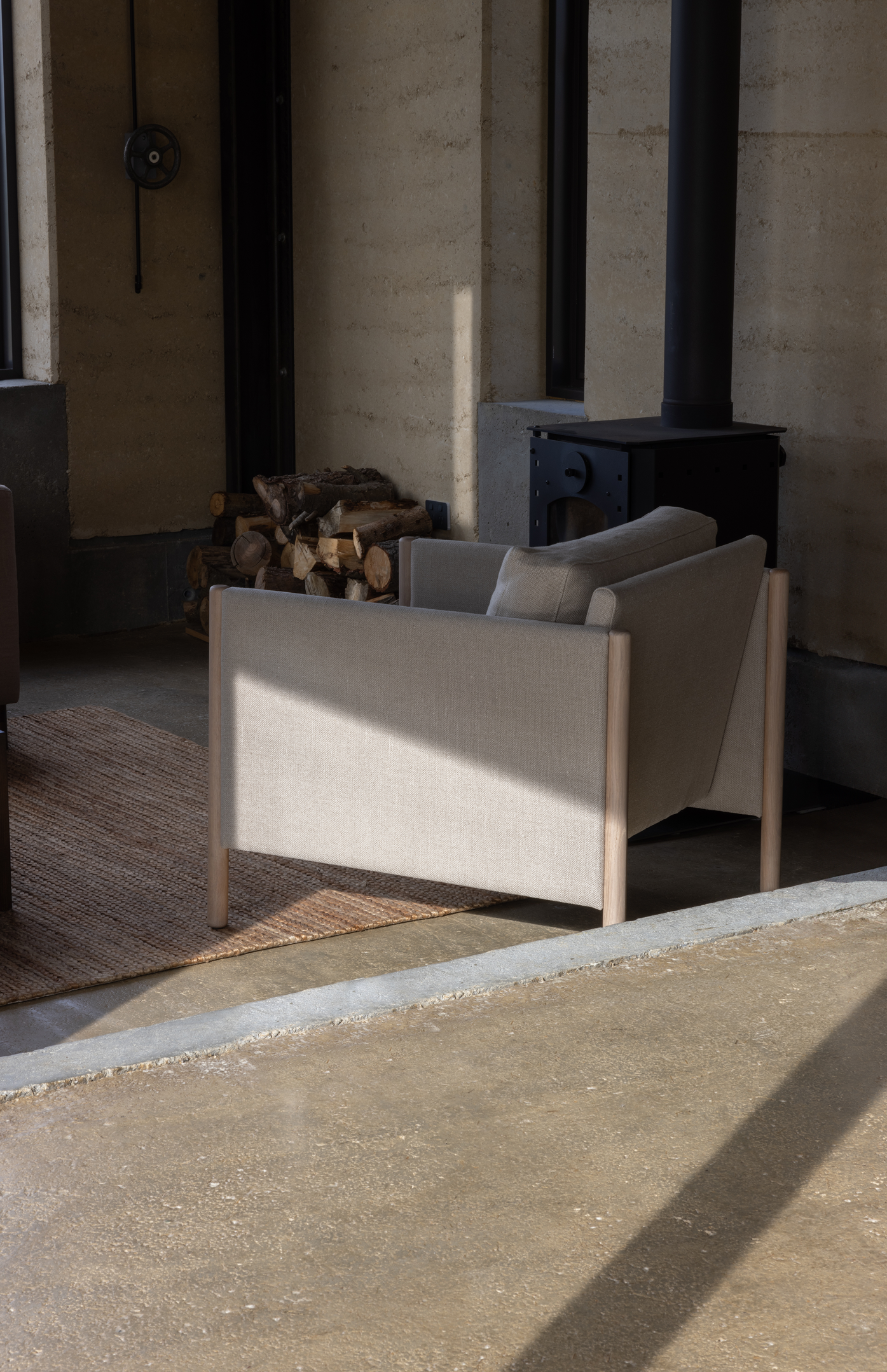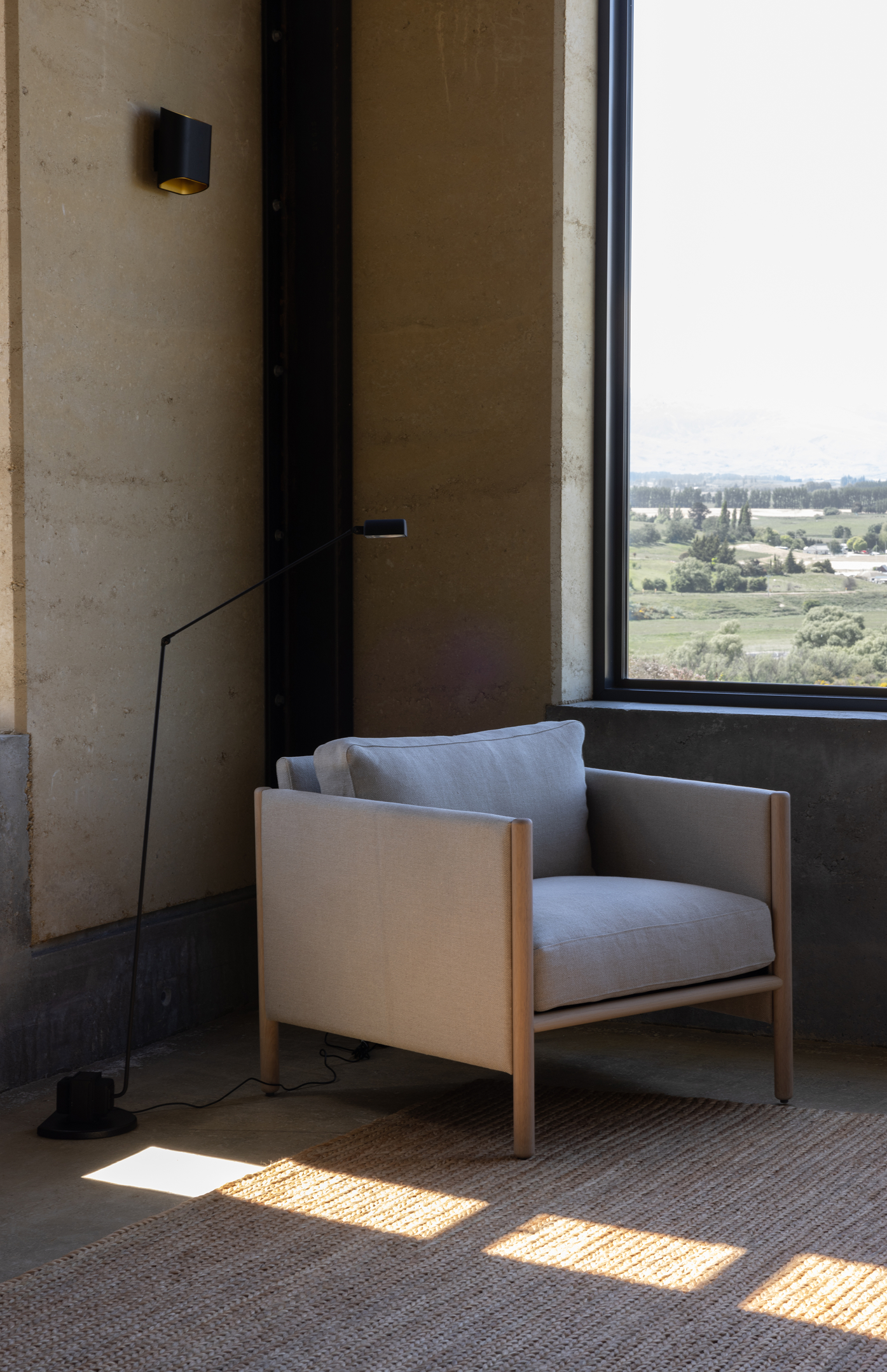 Balancing upholstery and timber, Frame is a comfortable lounge chair. An accentuated rake in the seat provides deep and sinking comfort, while negative space behind the seat brings a sense of poise and lightness.