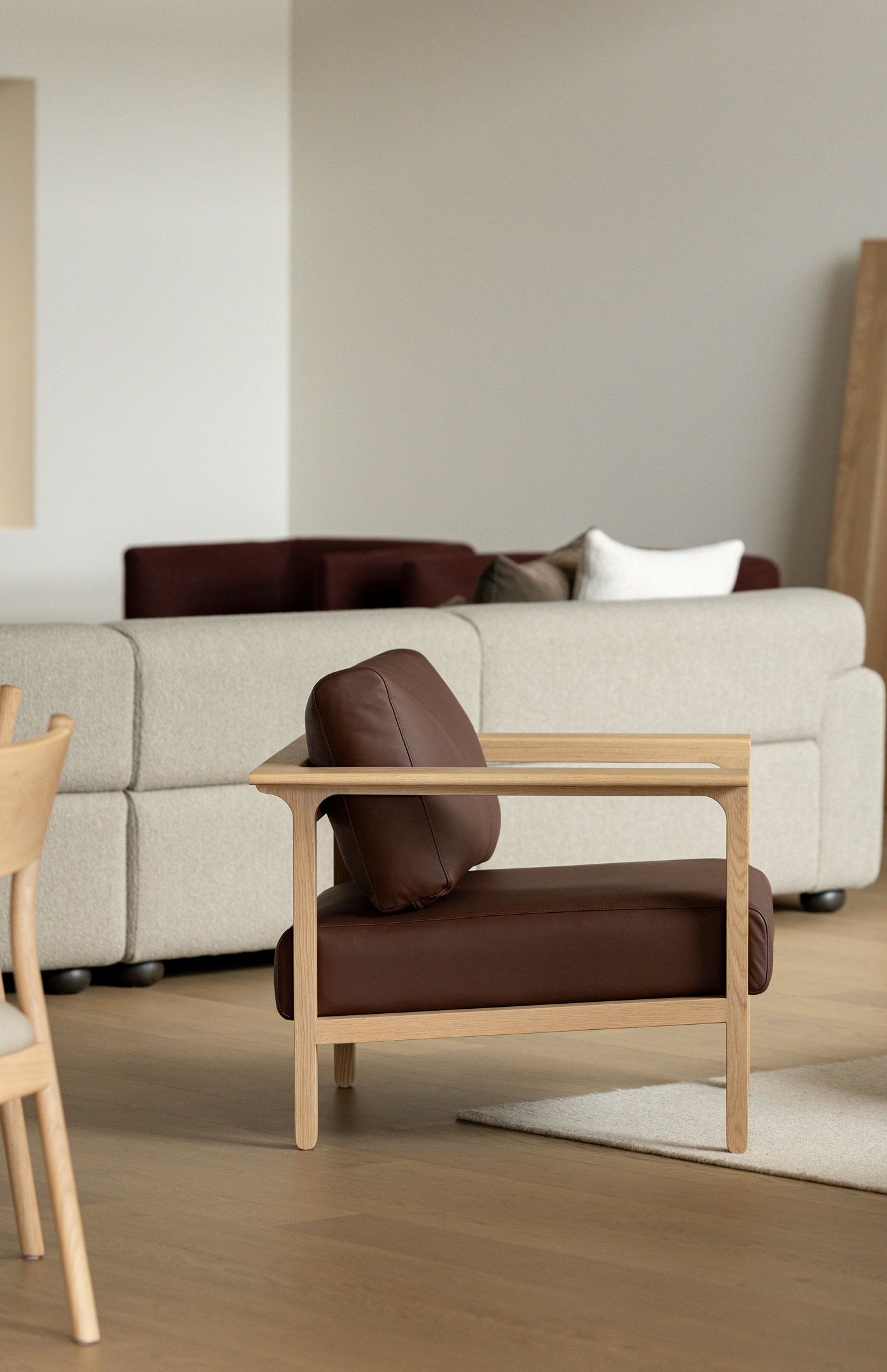 With contemporary detailing, Heirloom is a collection of sofas and chairs appealing to traditional ideals. Heirloom features a soft timber frame that exhibits craftsmanship, along with a thick fixed seat and feather wrapped back cushion.