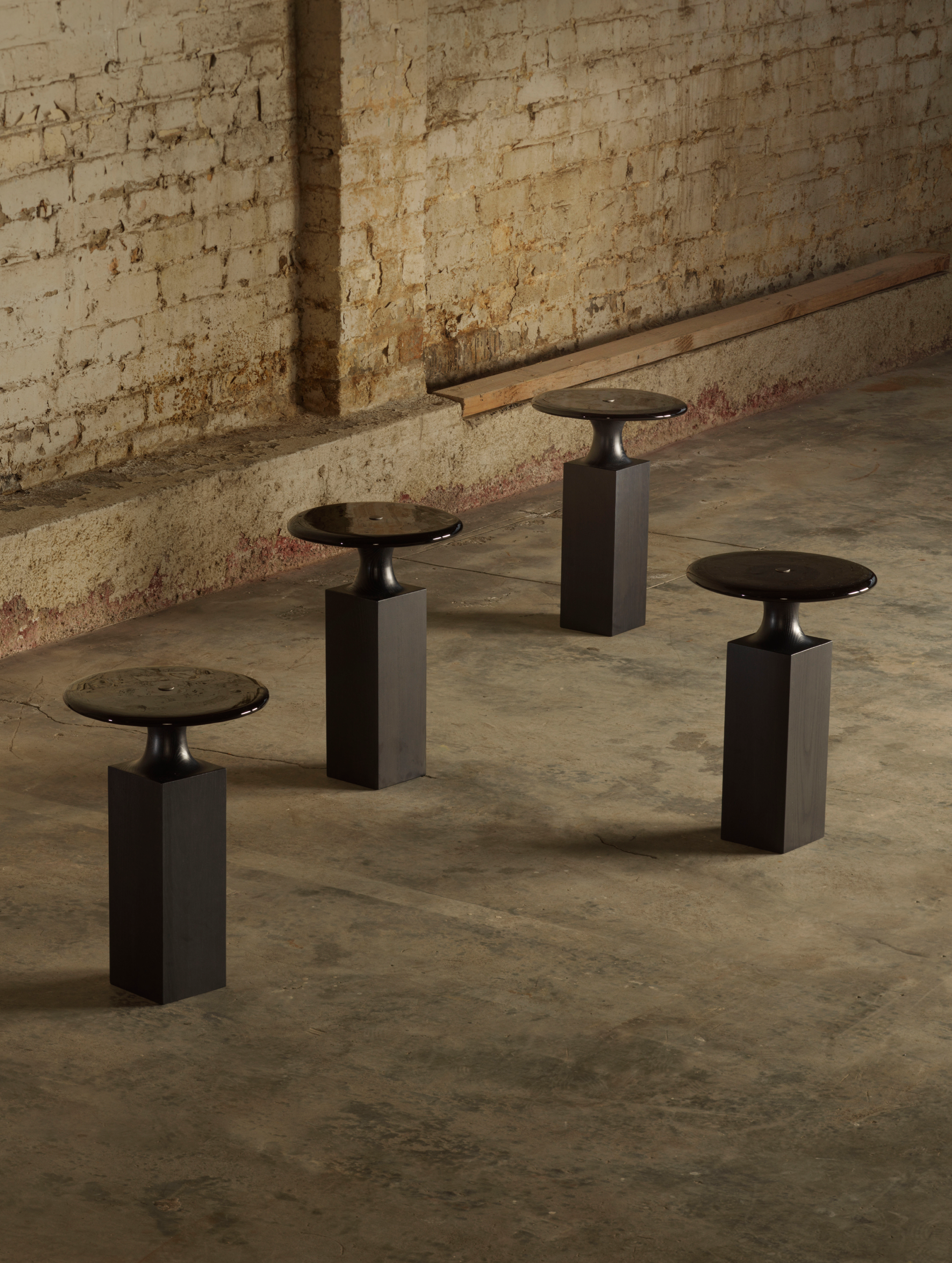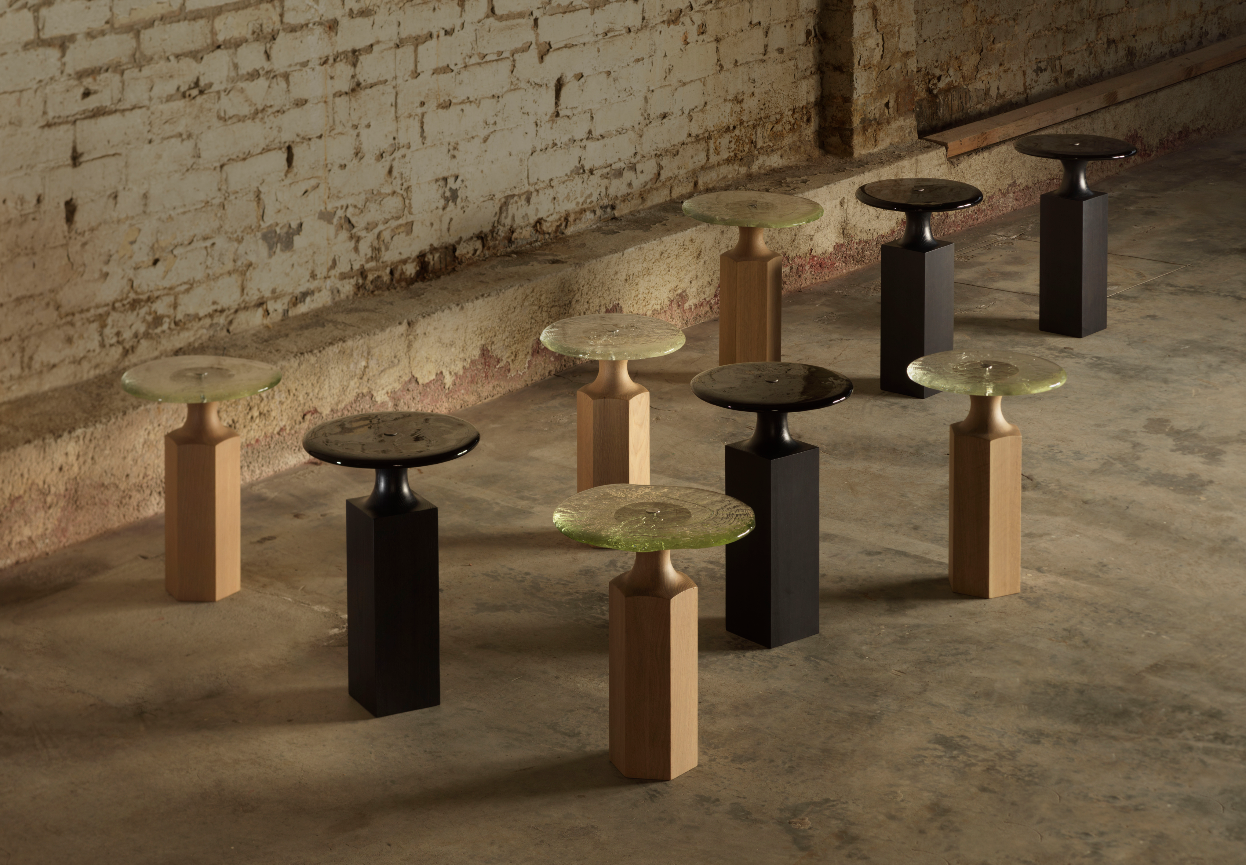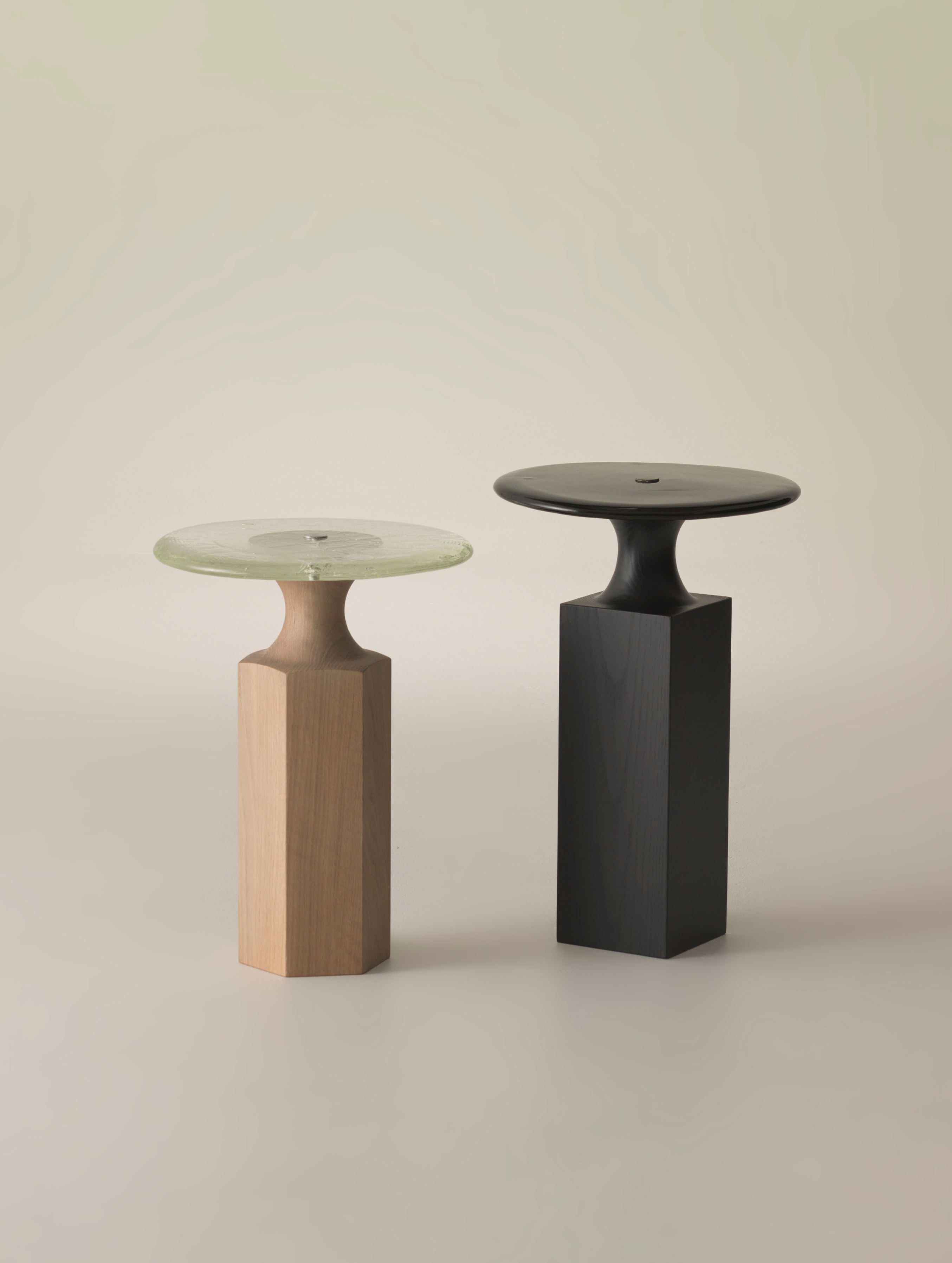 A collaboration with Buster Caldwell, Bouba—Kiki are two side tables where timber meets glass. Tiny ripples and bubbles in the glass, poured by Luke Jacomb, catch the daylight. Where Bouba glows, Kiki grounds – a considered pairing.