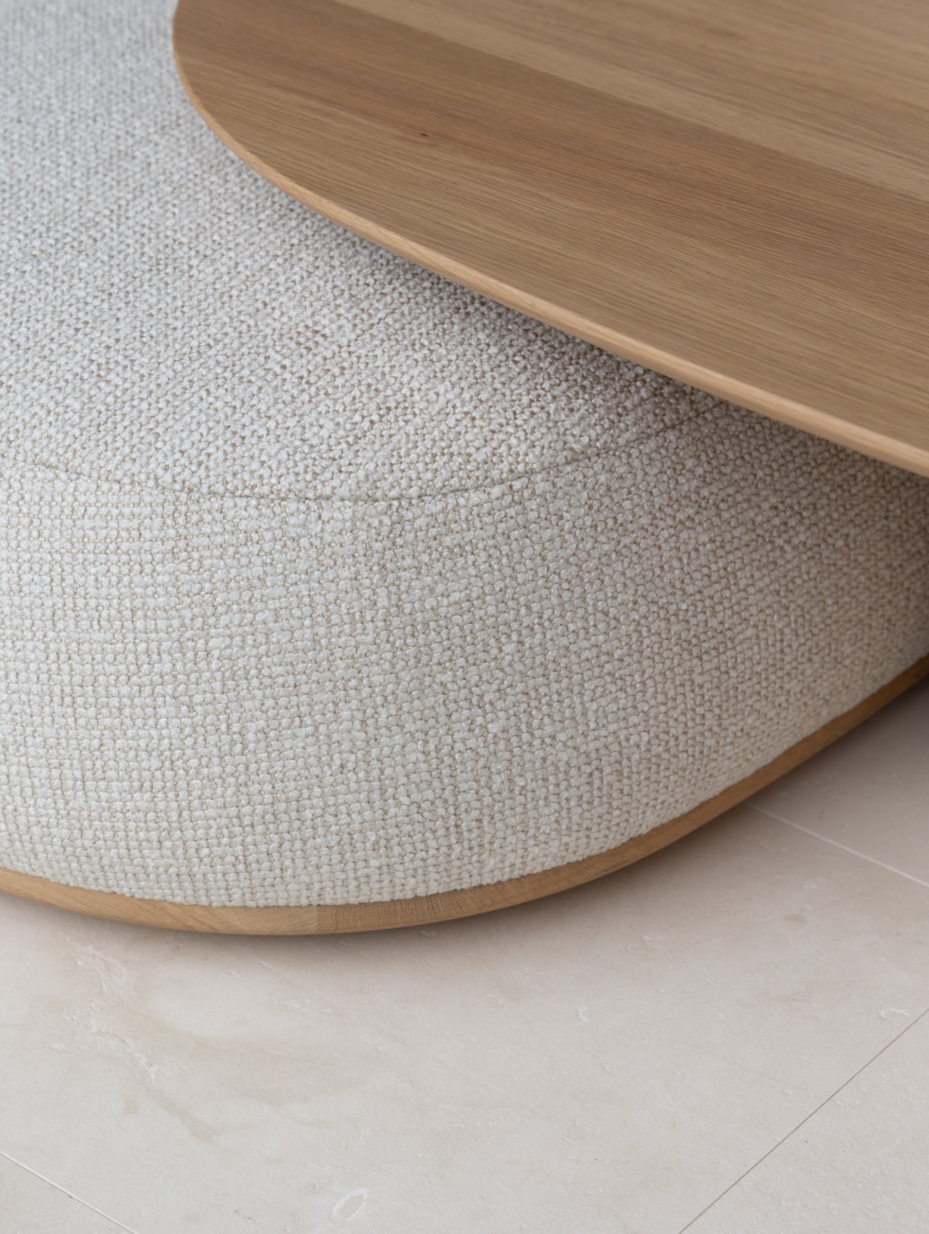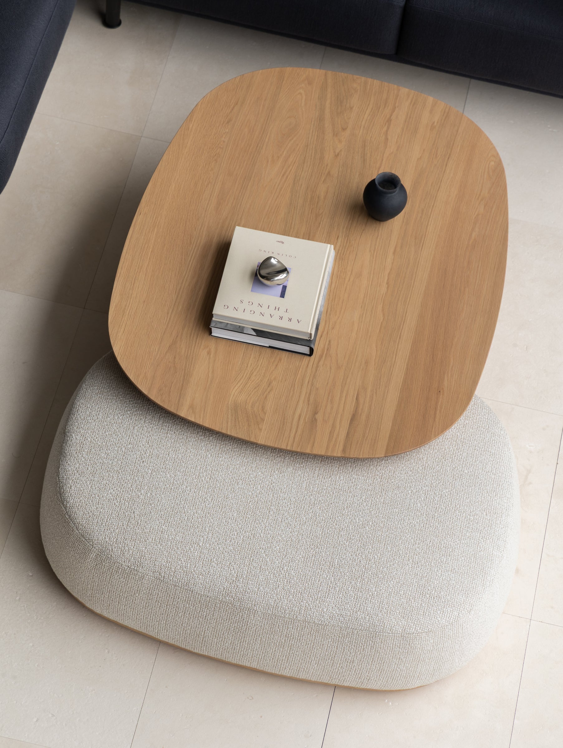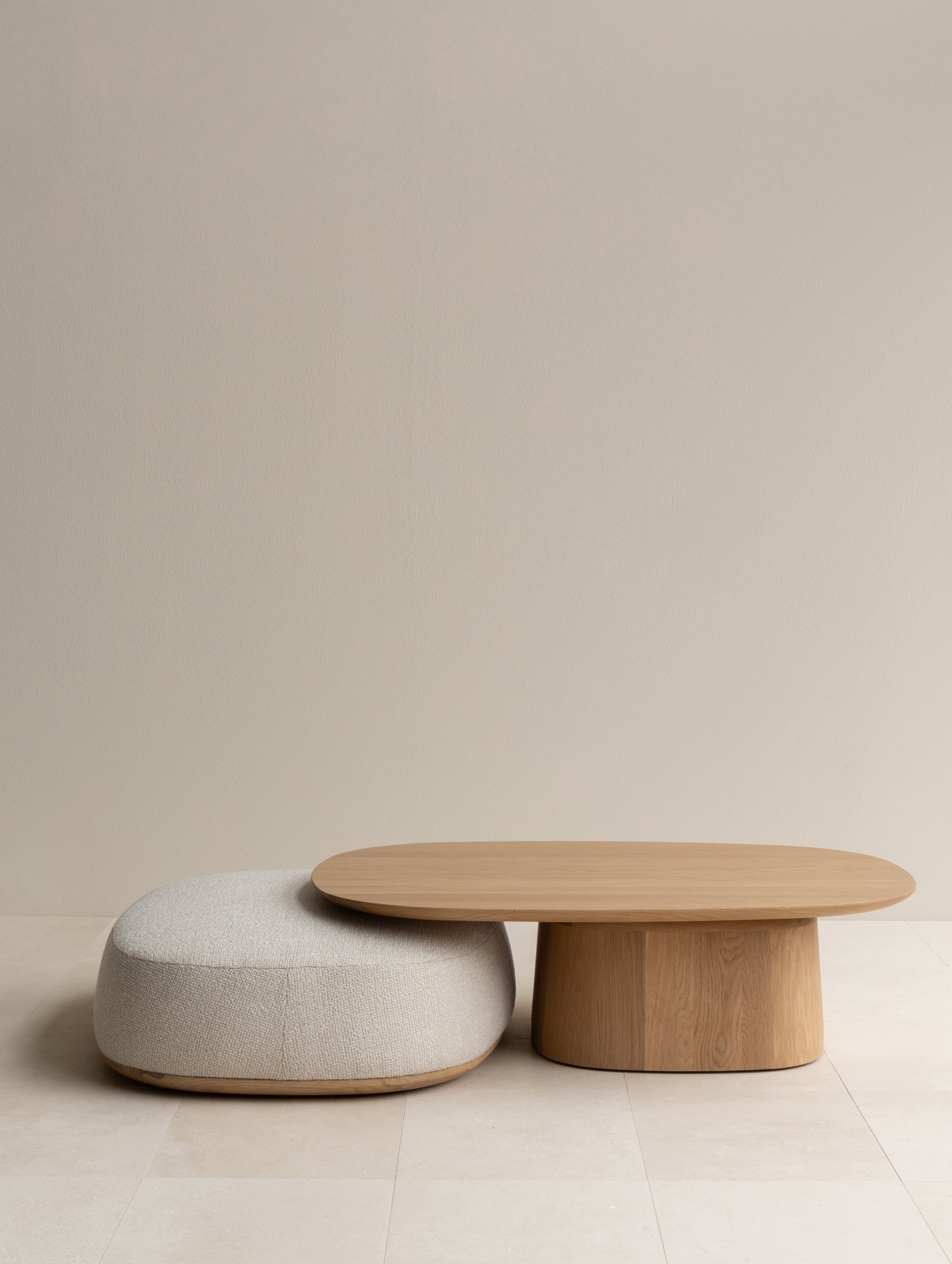 With soft, sculptural forms and a refined top edge, Lena is a collection of coffee tables, side tables, ottomans and poufs. Its off-set table base enhances flexibility, adapting seamlessly to your space. Whether used individually or together, Lena pairs effortlessly with sofas, adding both function and elegance.