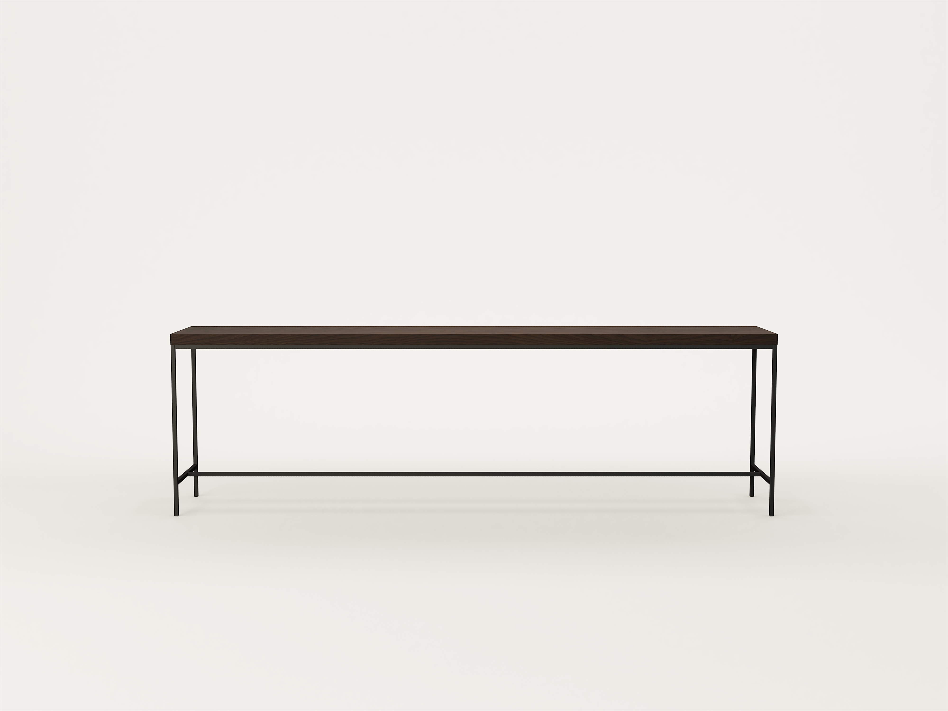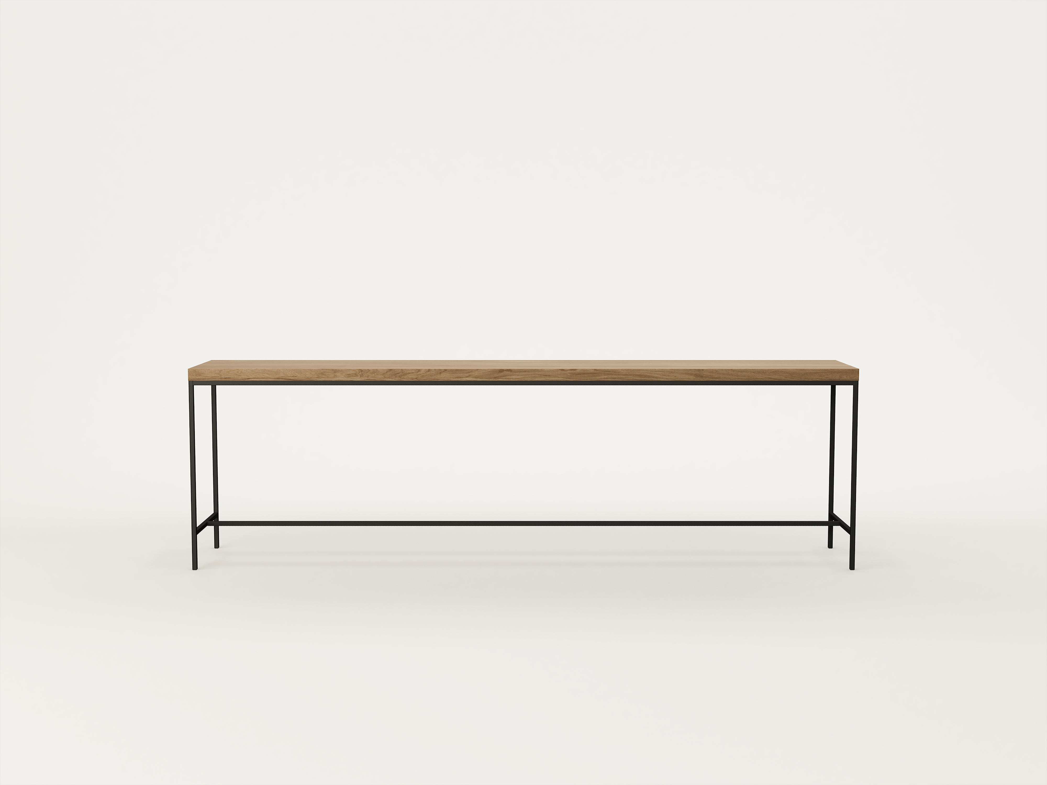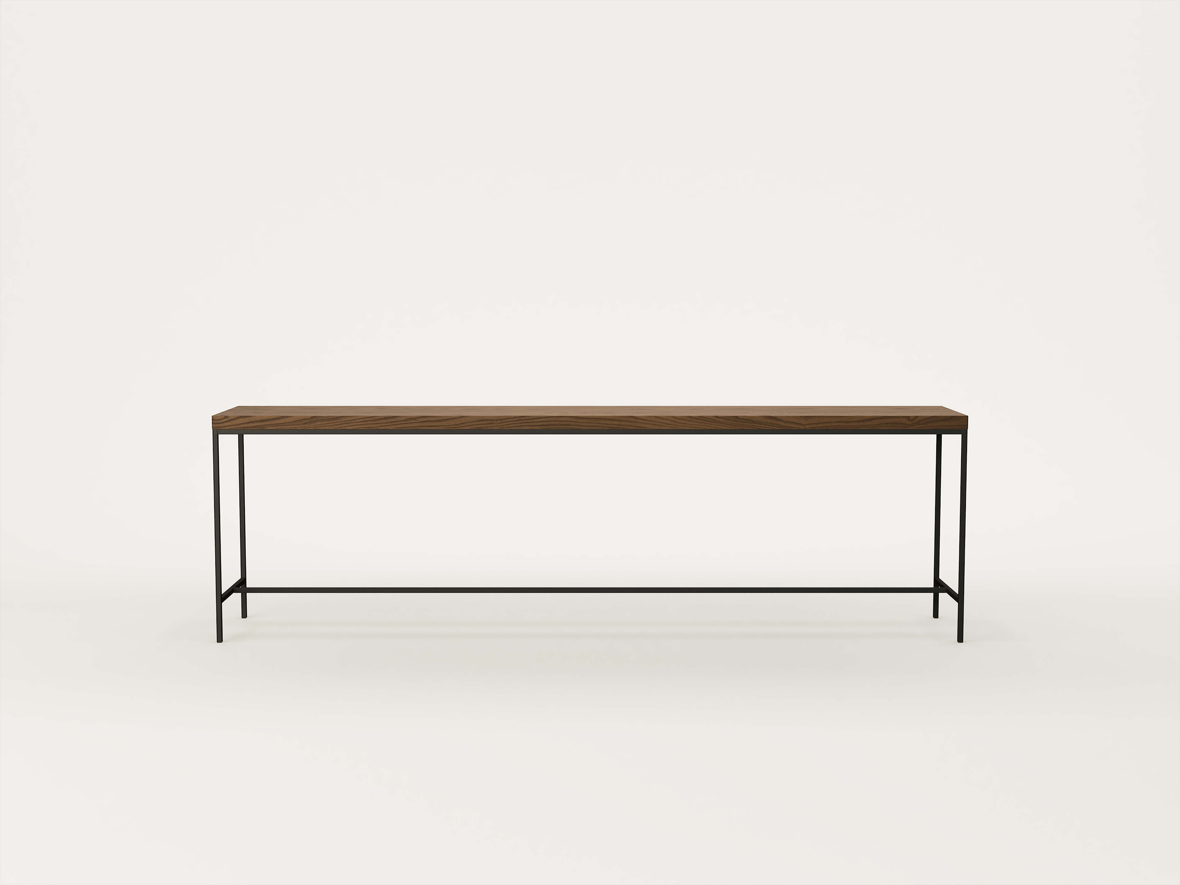 An elegant and refined console, Ludo features a solid timber top and powder coated metal base with square profile legs.