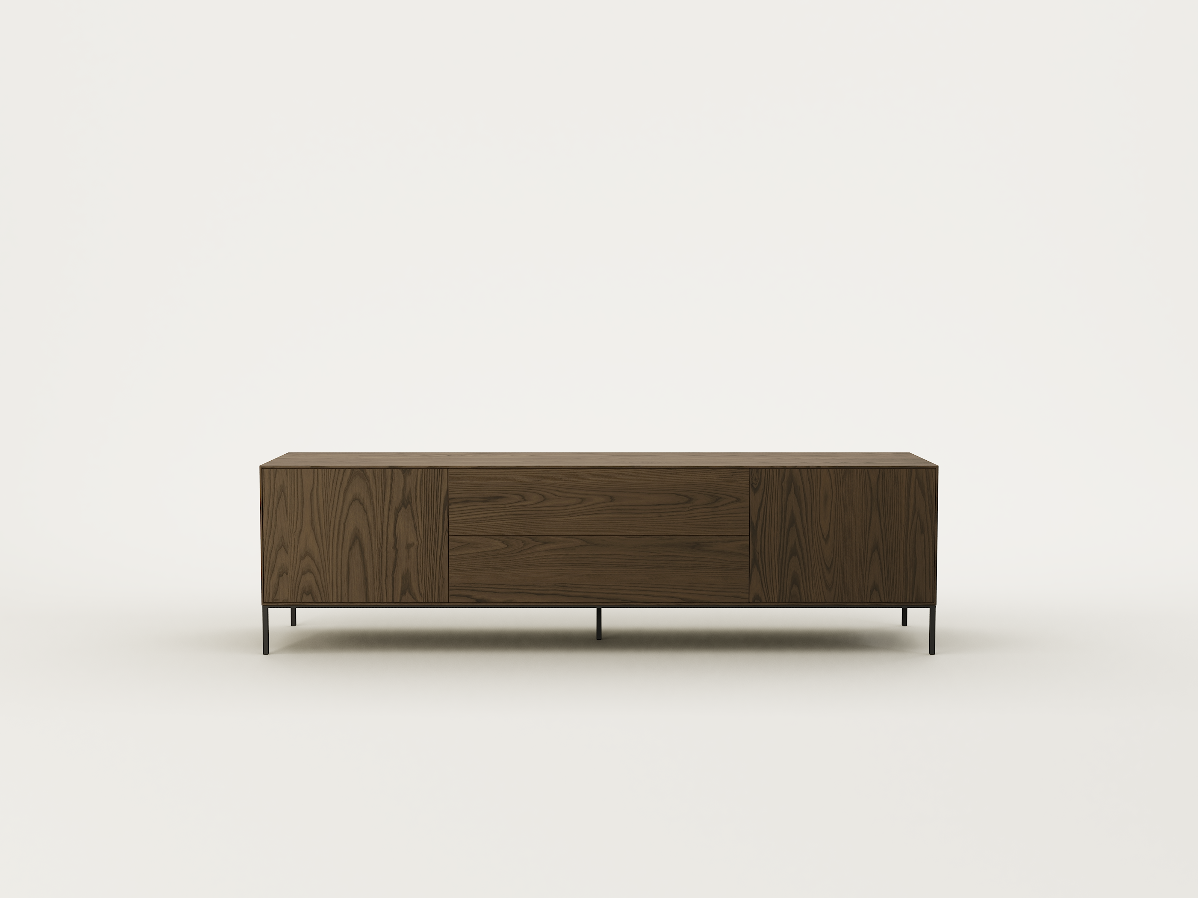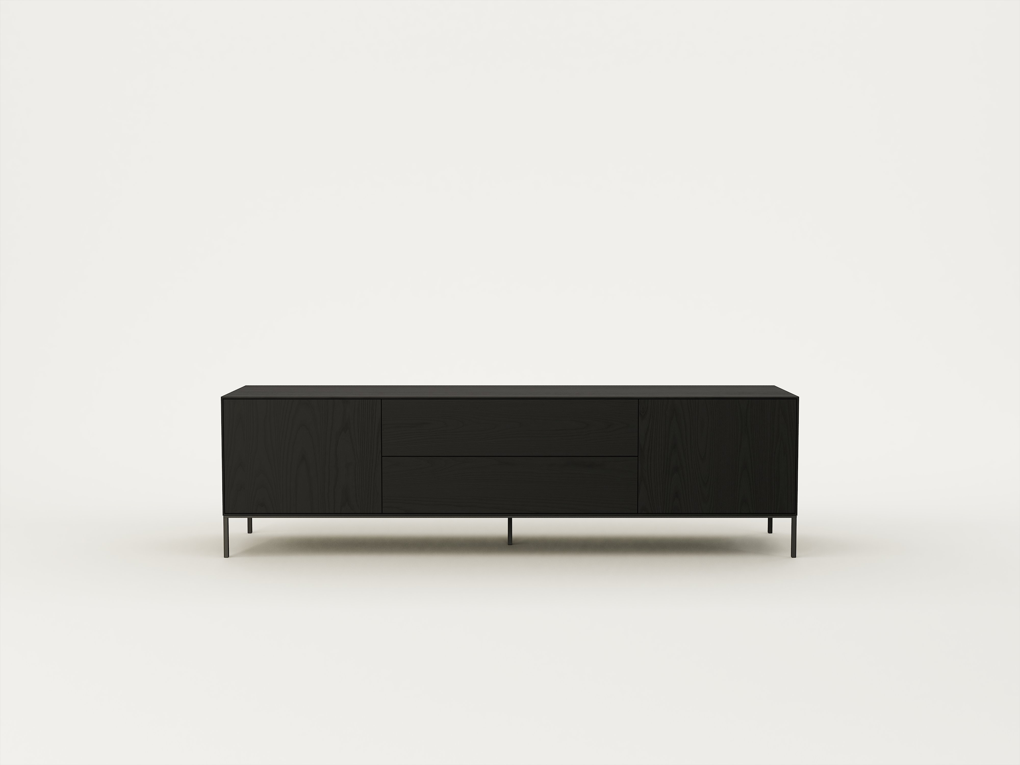 With a minimal form and a refined powder coated metal base, Lume is a family of functional drawers and cabinets. A versatile, elongated sideboard designed for living spaces.