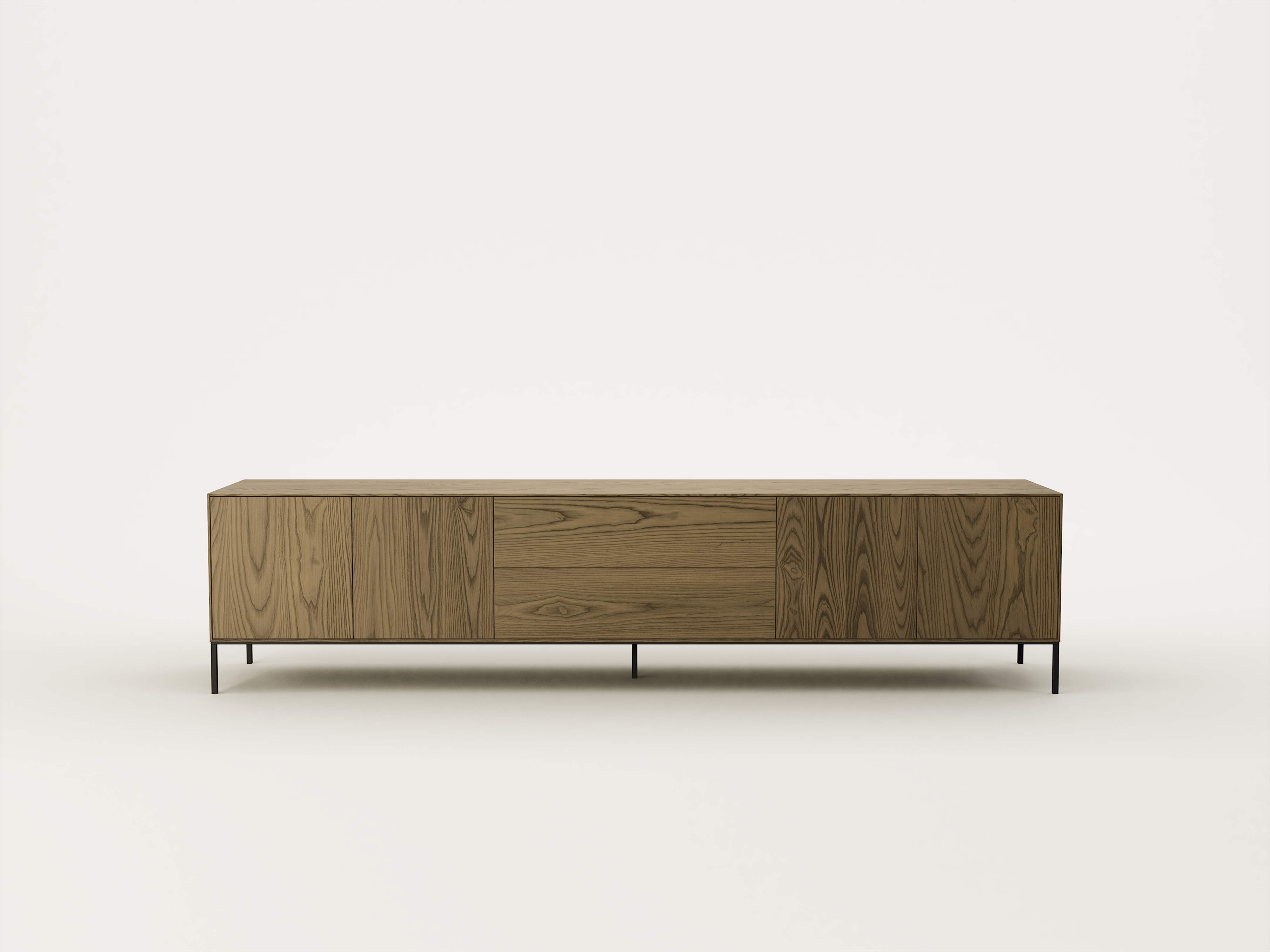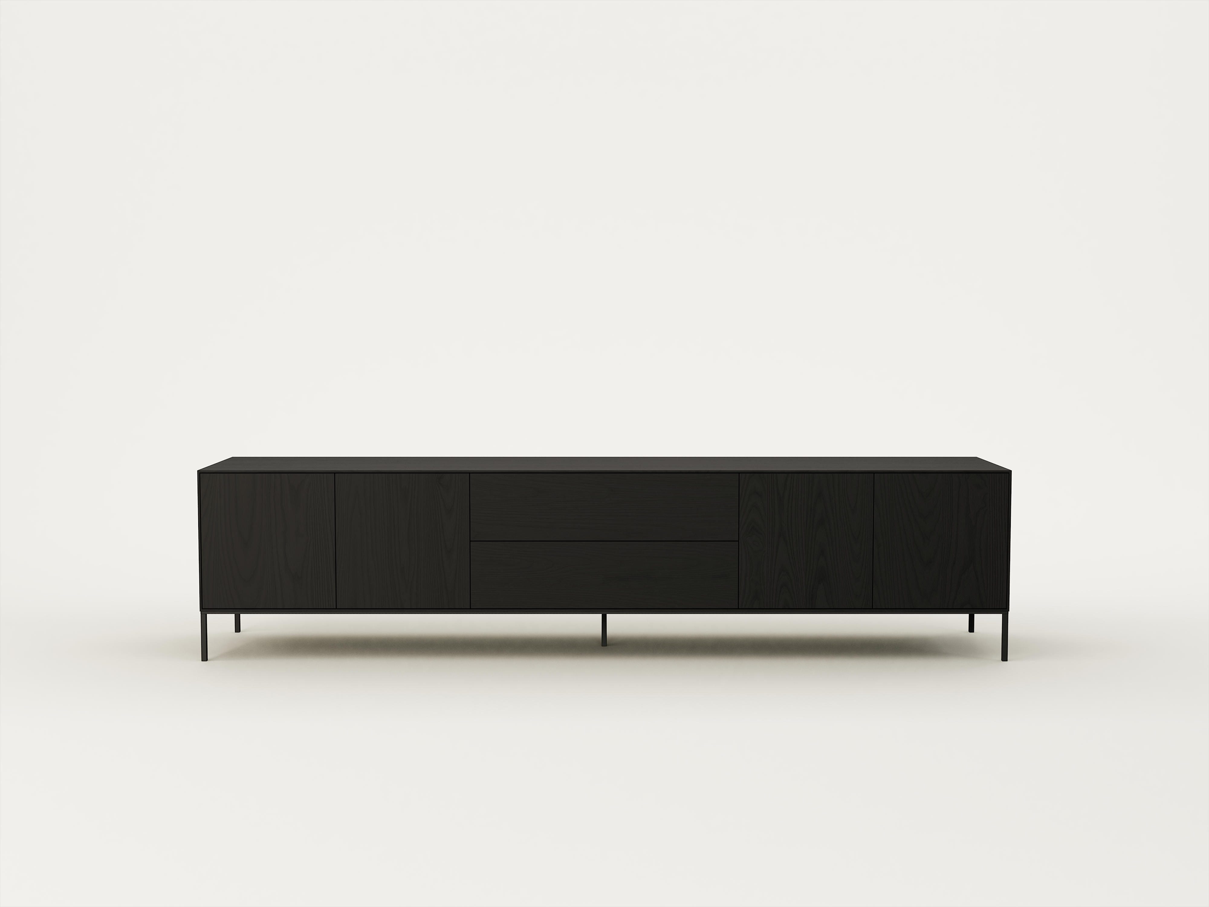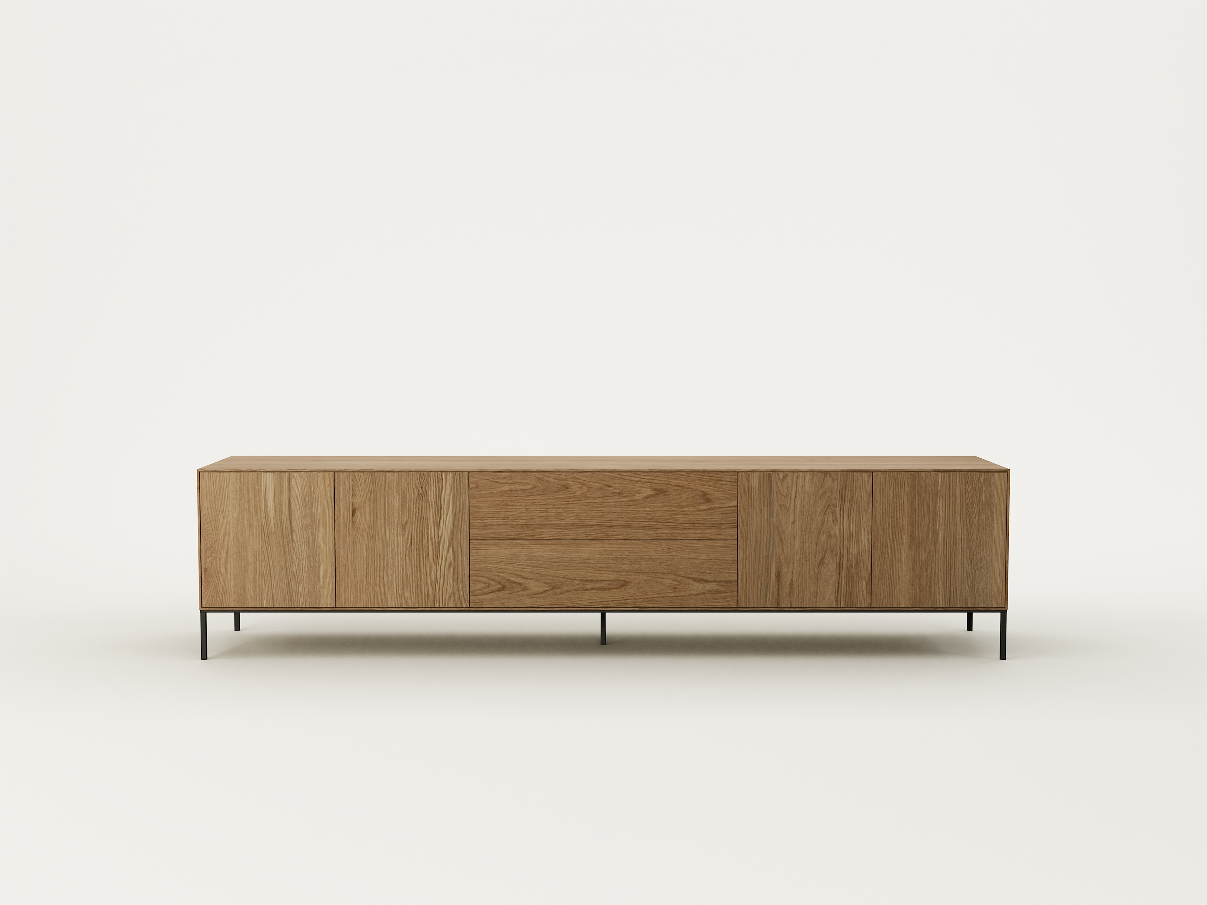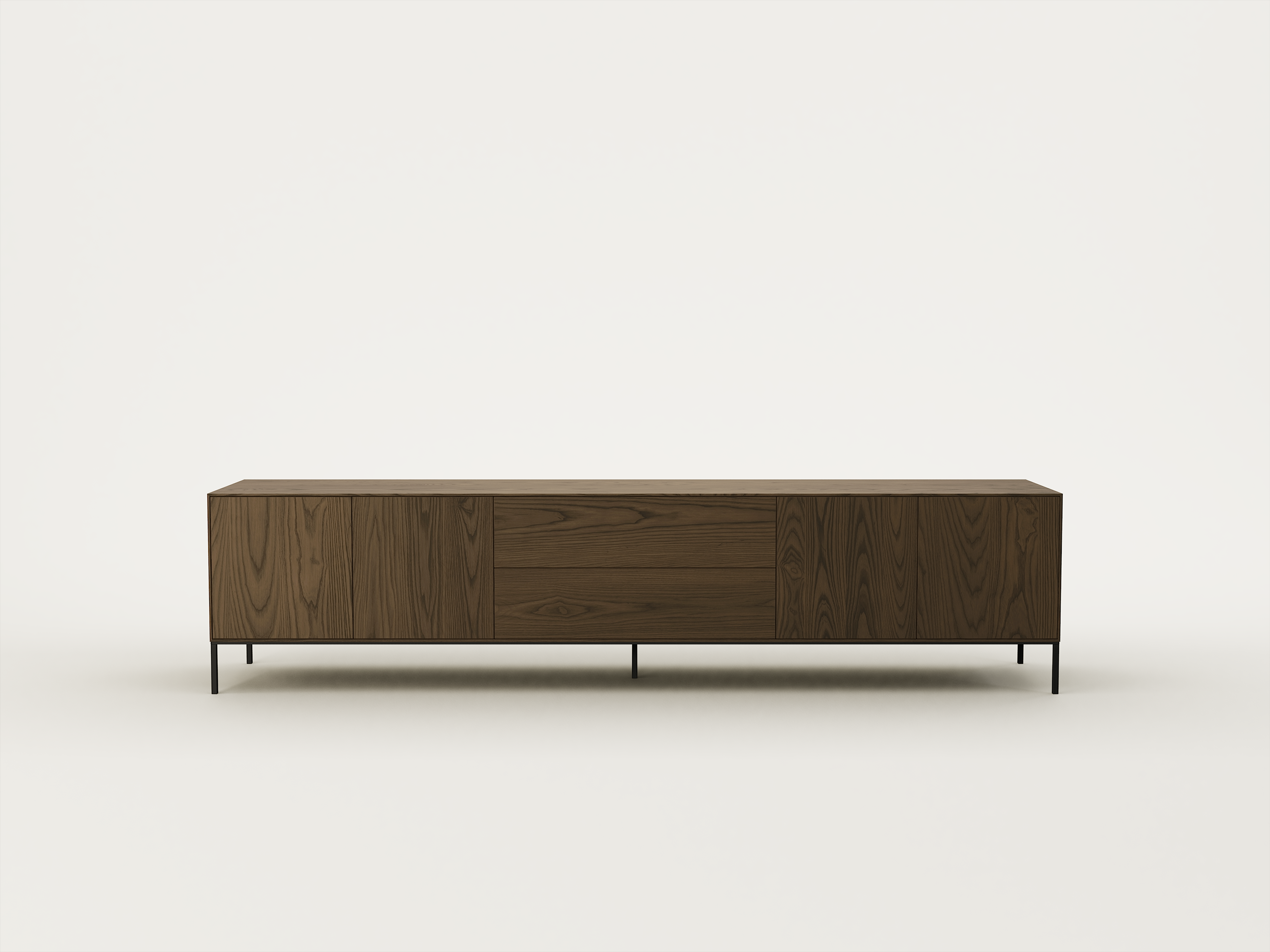 With a minimal form and a refined powder coated metal base, Lume is a family of functional drawers and cabinets. A versatile, elongated sideboard designed for living spaces.