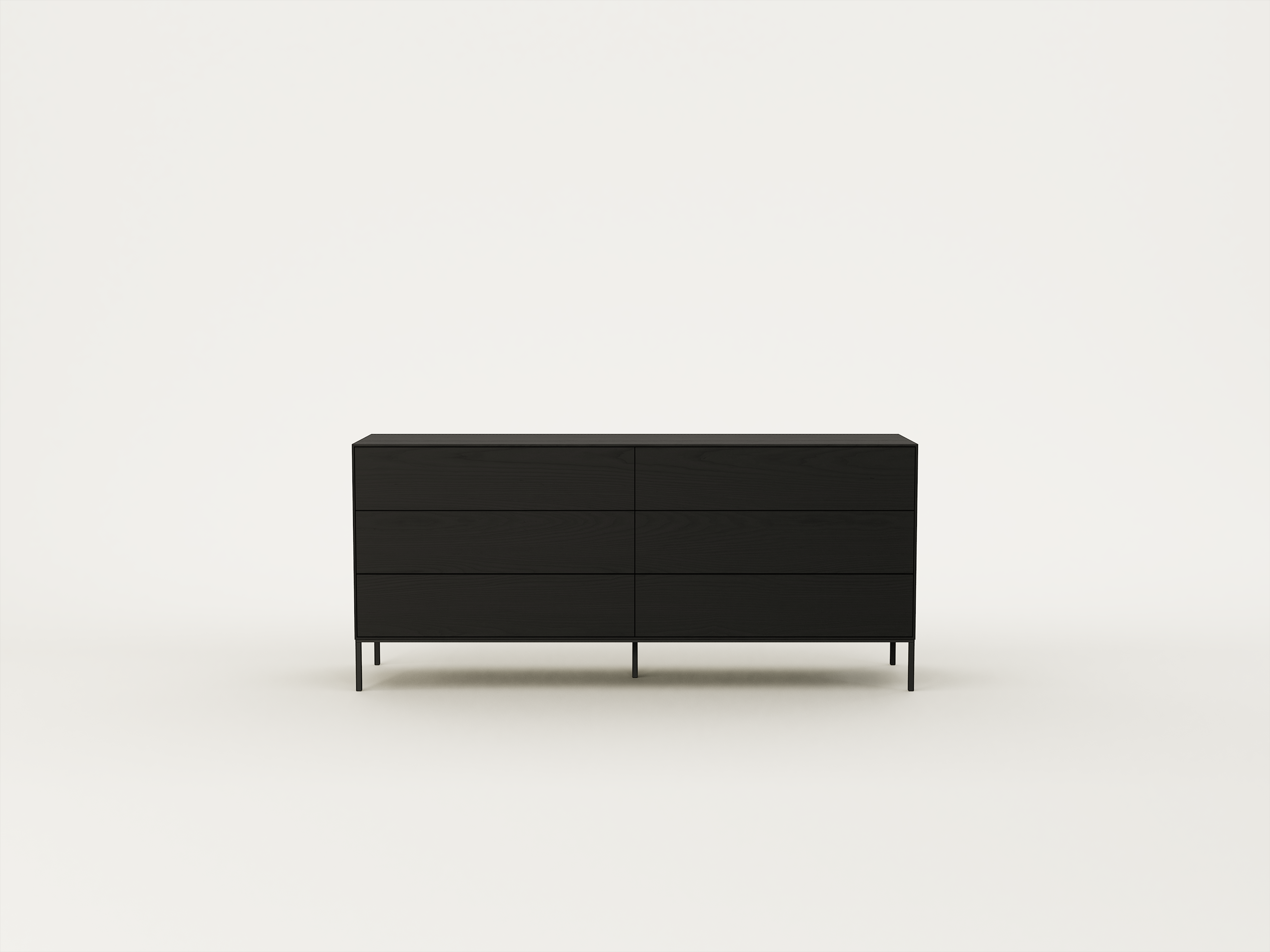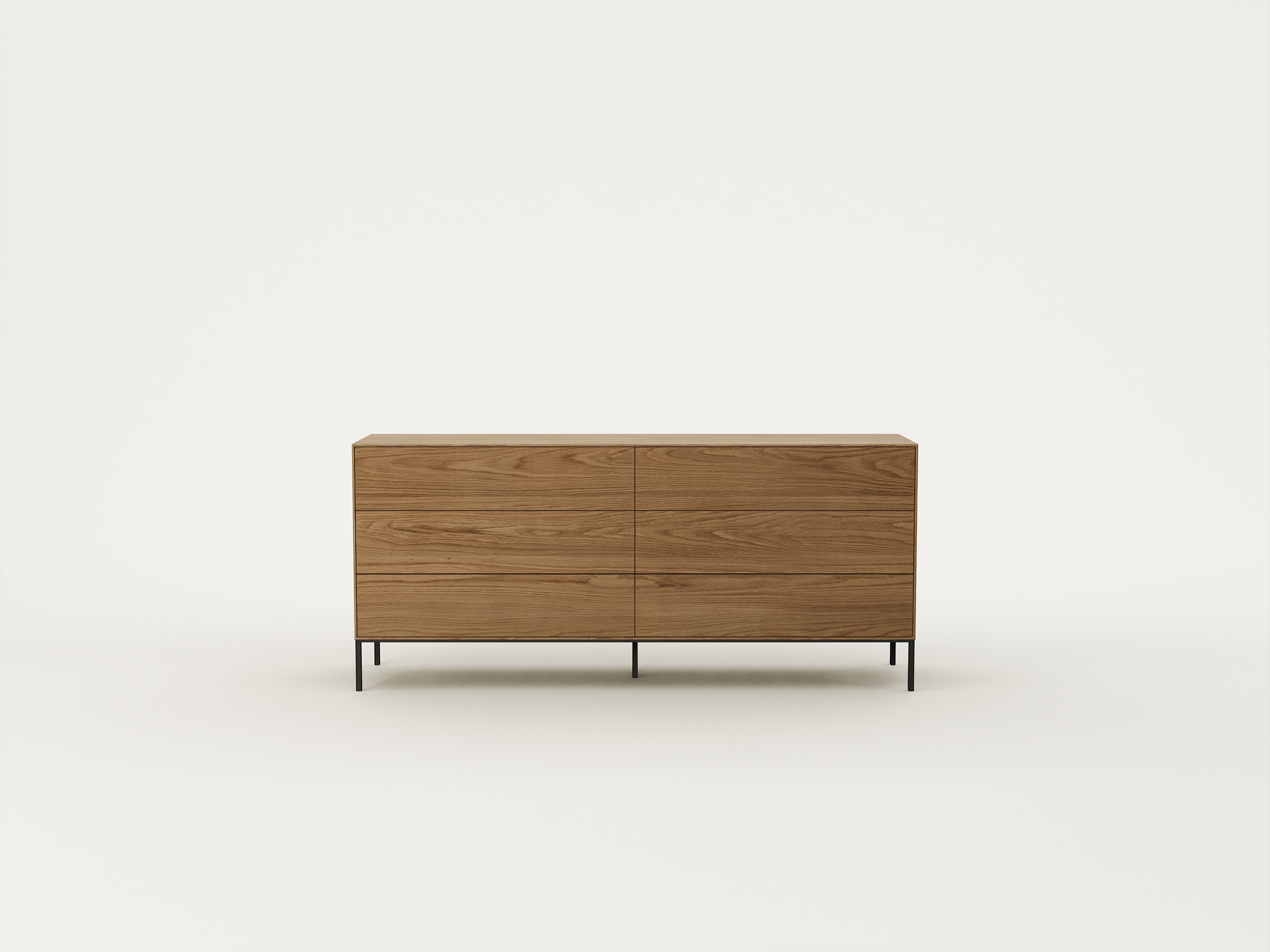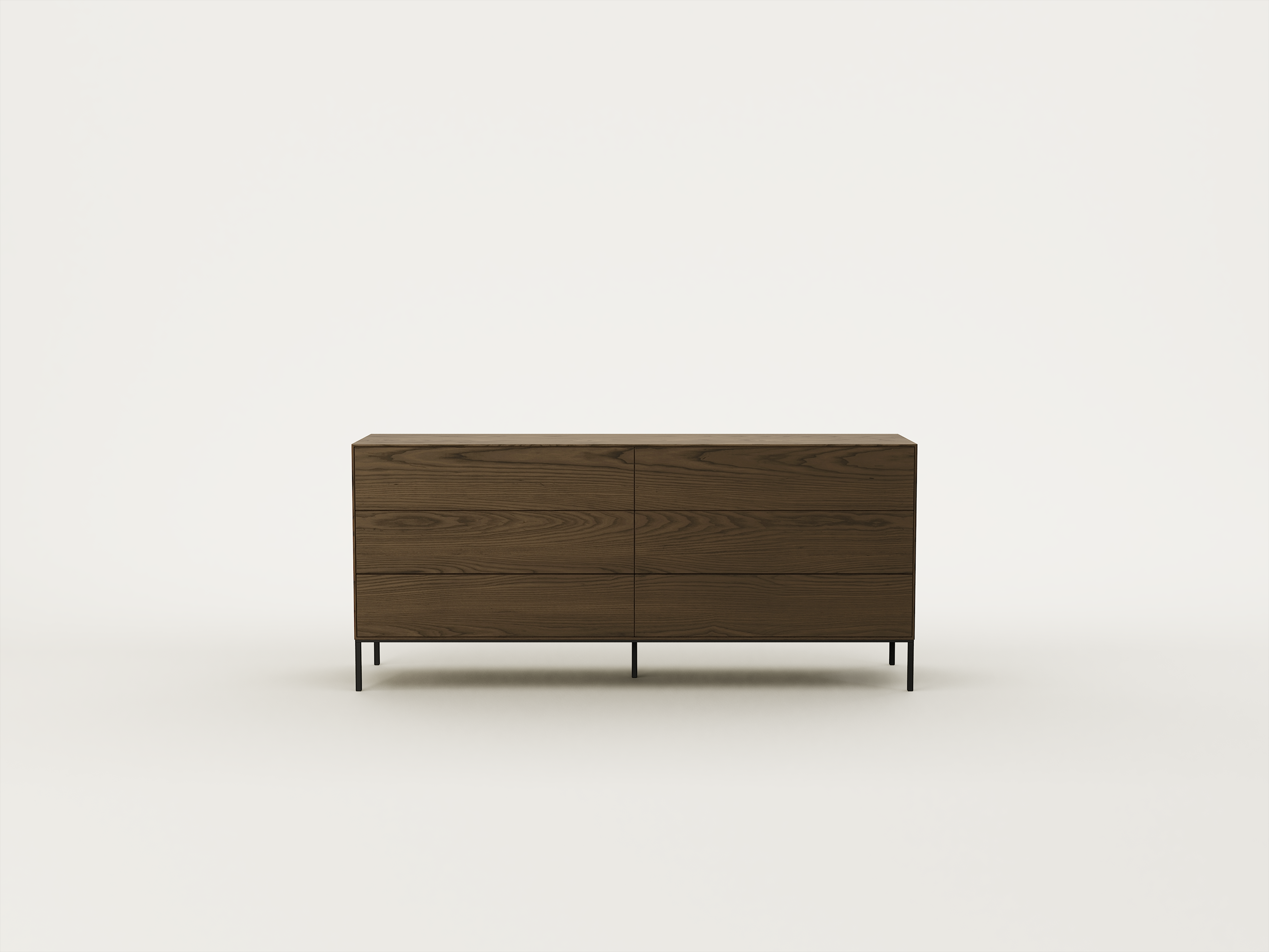 With a minimal form and a refined powder coated metal base, Lume is a family of functional drawers and cabinets. A versatile six drawer lowboy designed for living spaces.