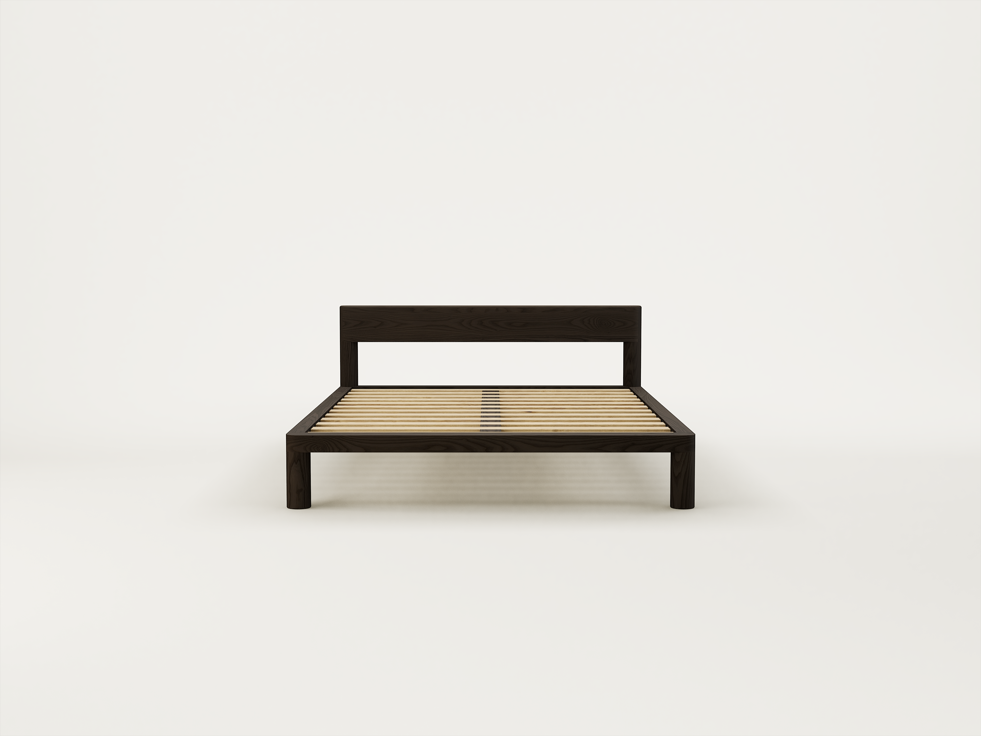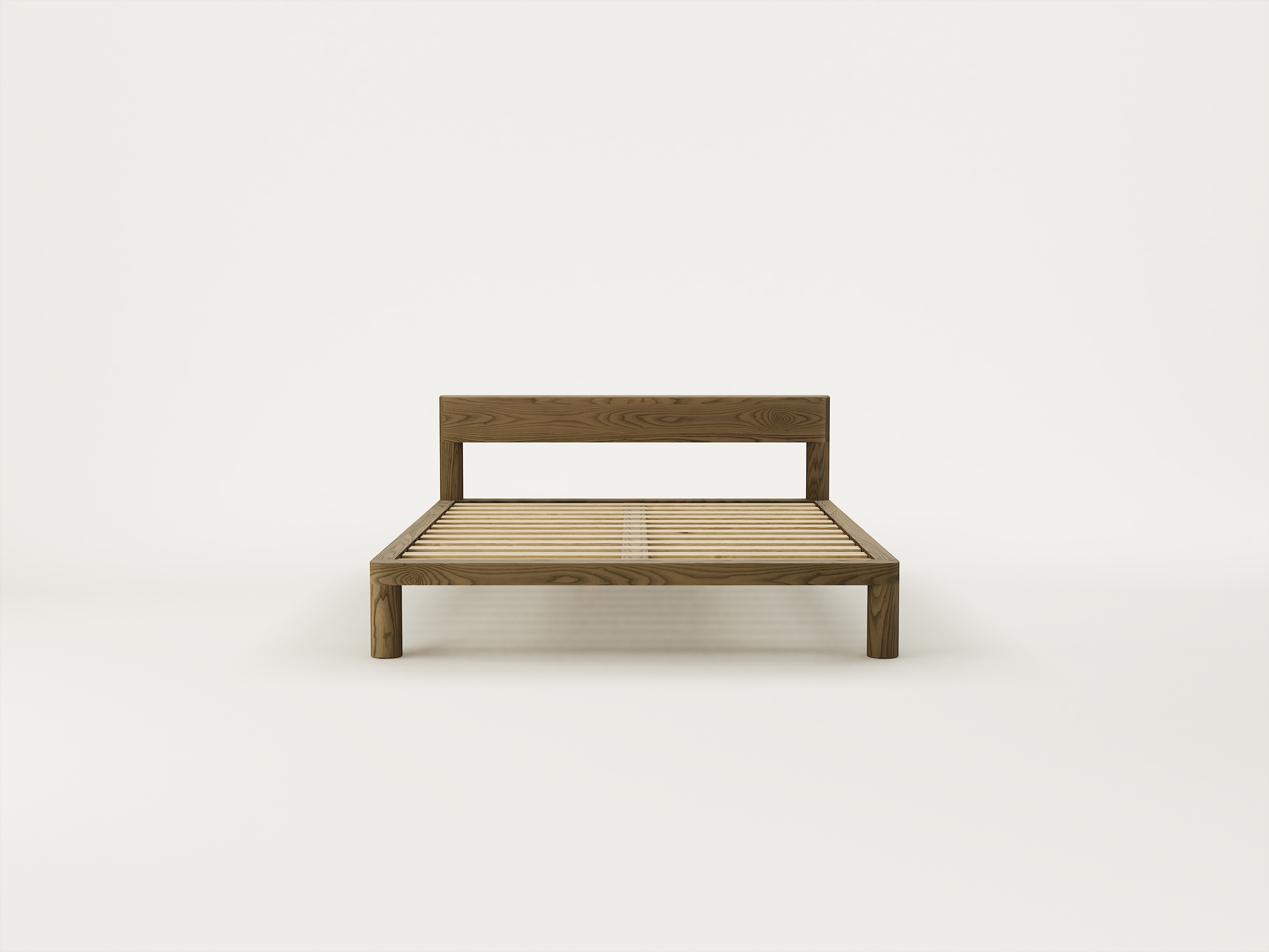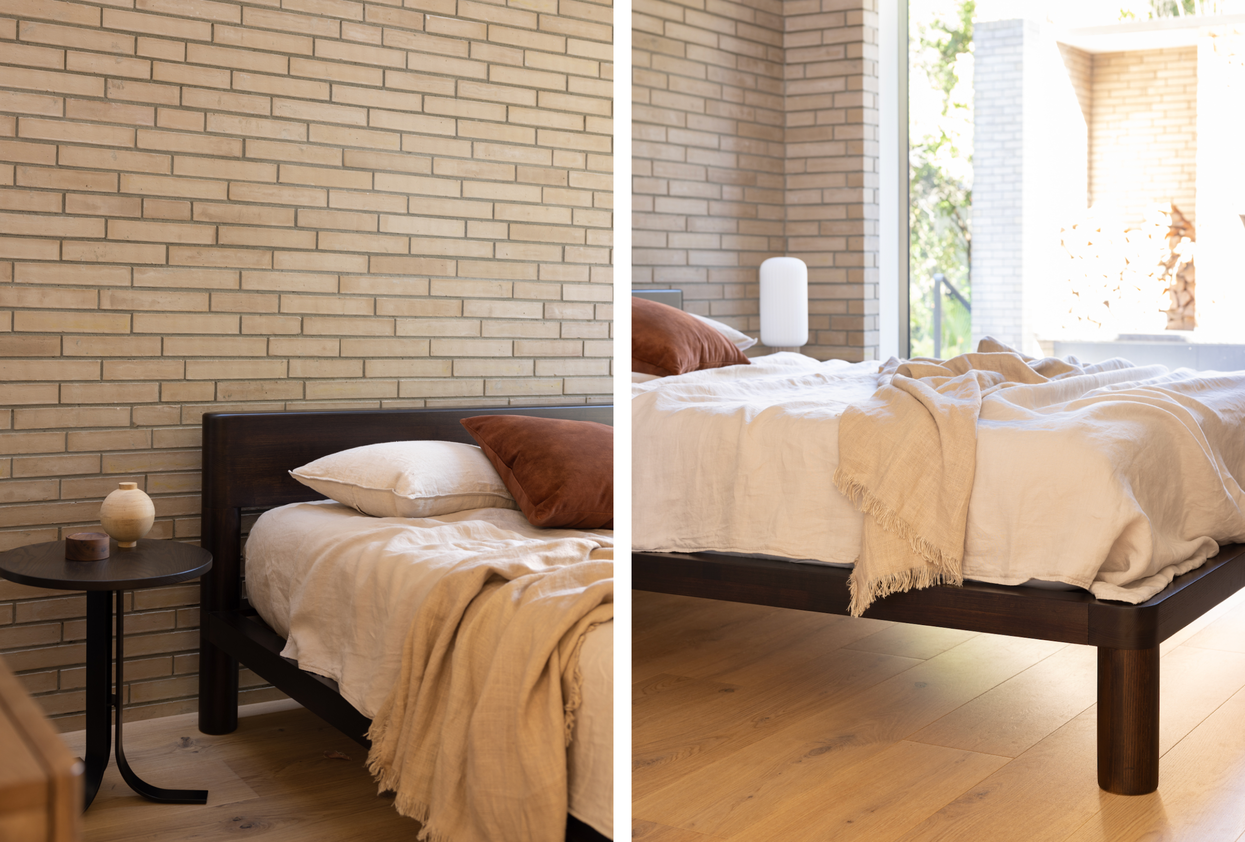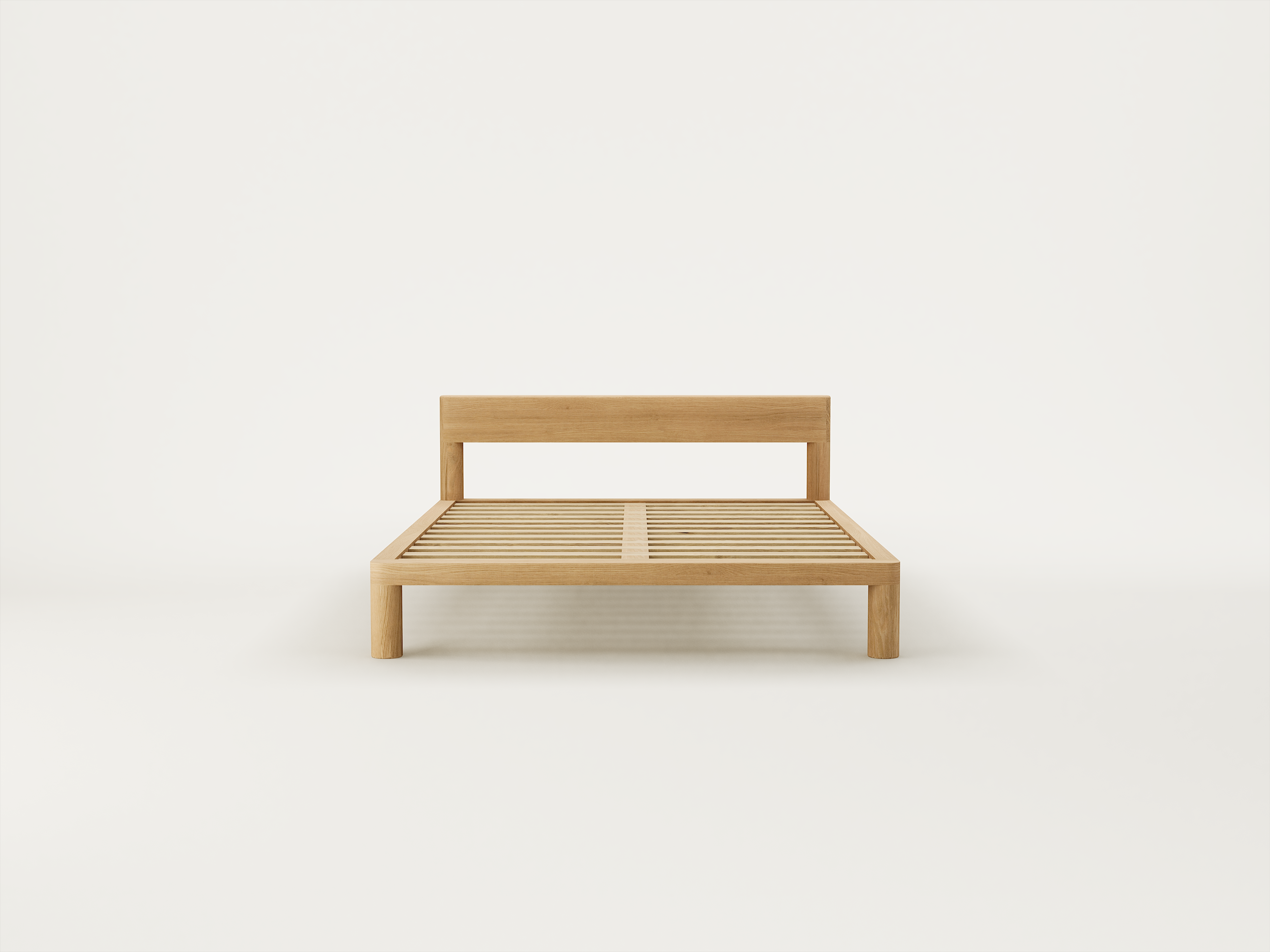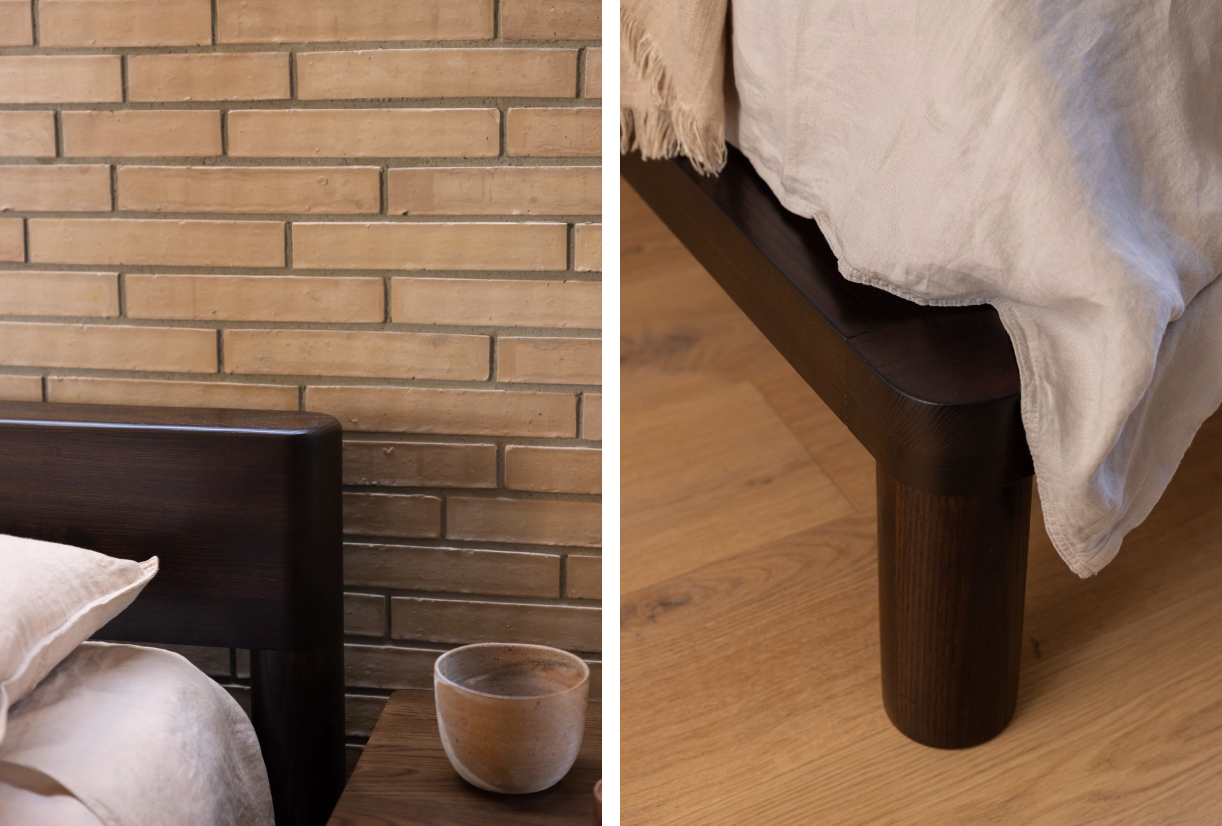 A solid timber slat bed with softened details, Muse is characterised by robust, round legs and curved corners