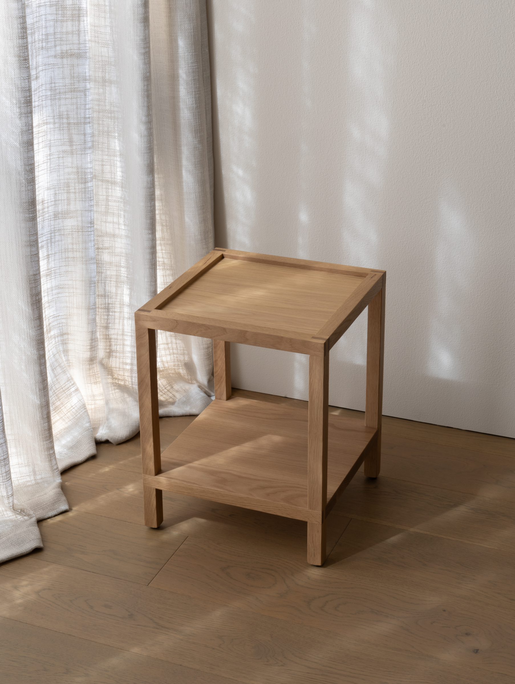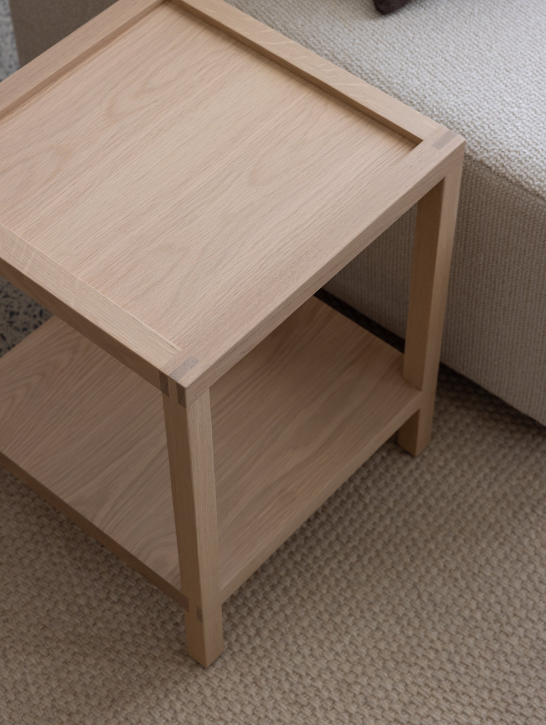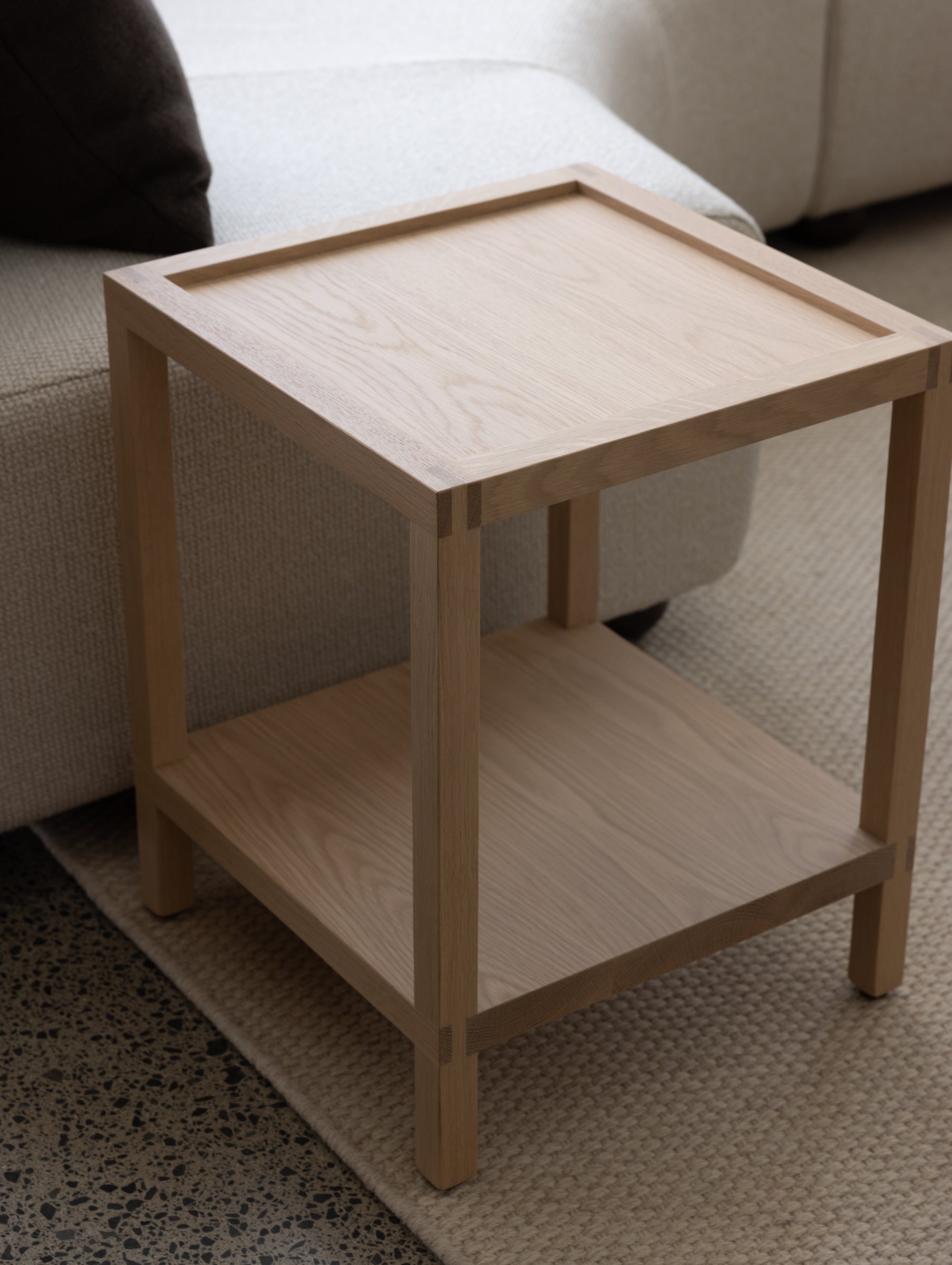 Crafted from solid timber, Nara is characterised by inset detailing and feature bridle joins. A functional side table with a shelf, Nara seamlessly integrates into a range of spaces.