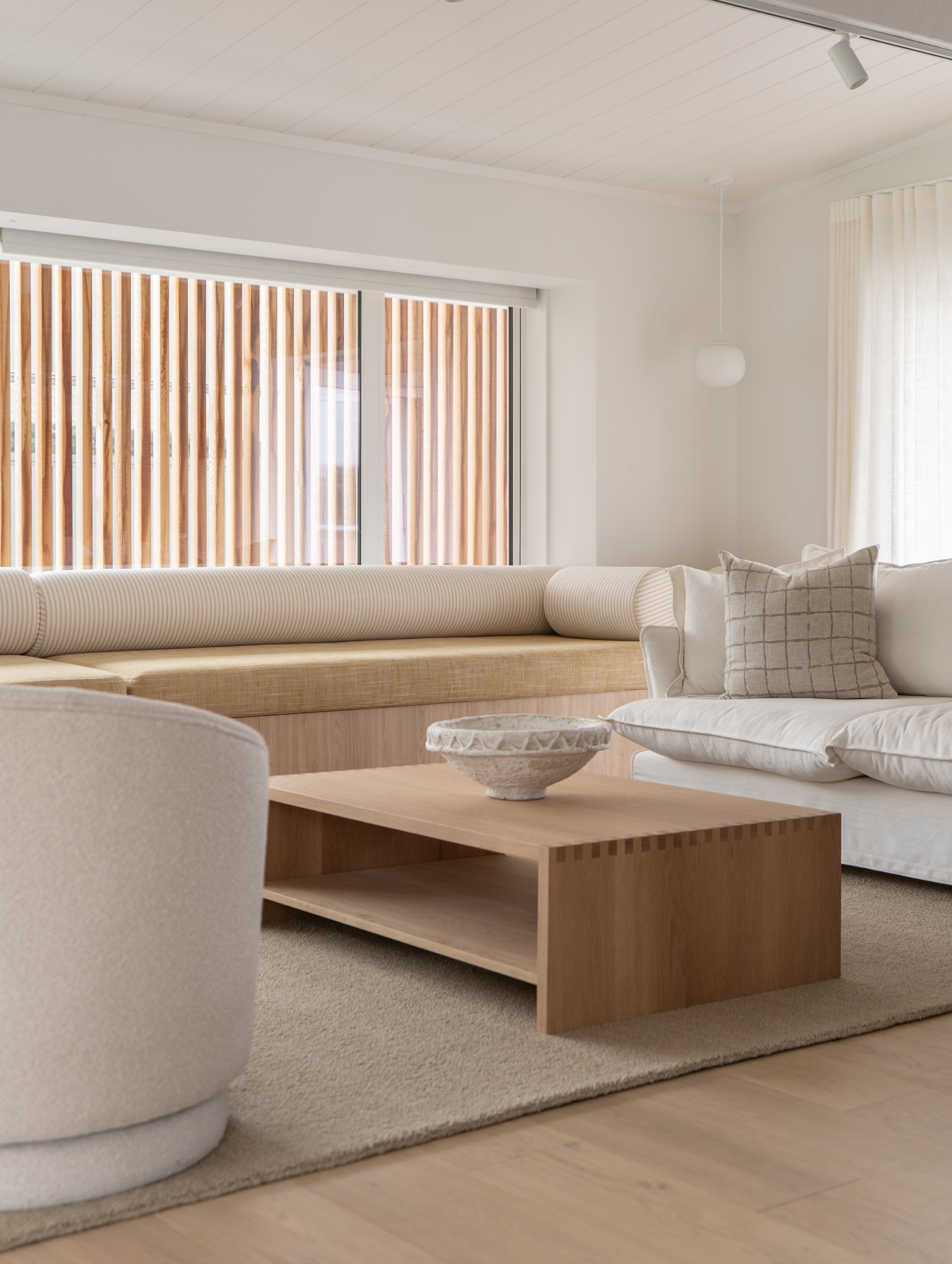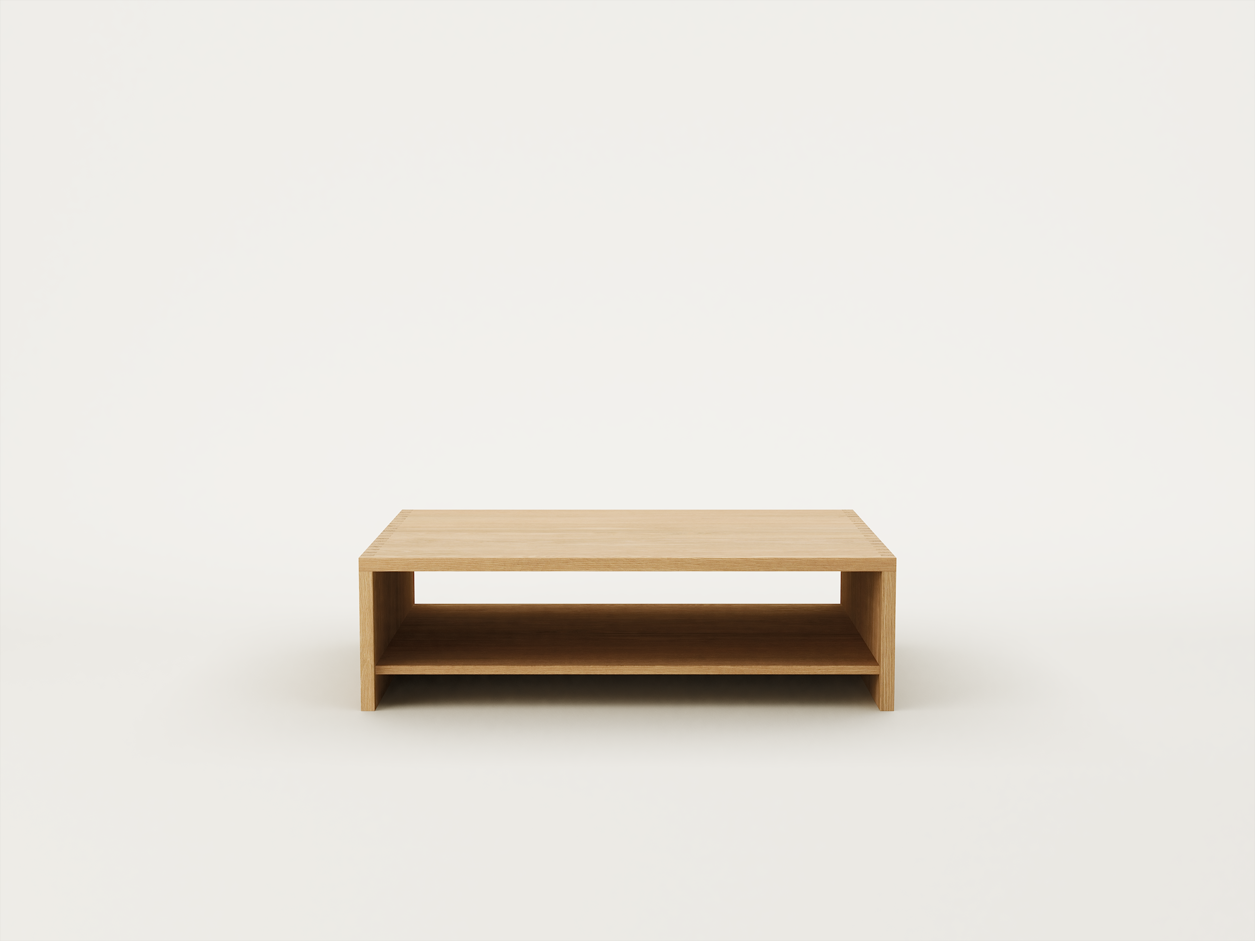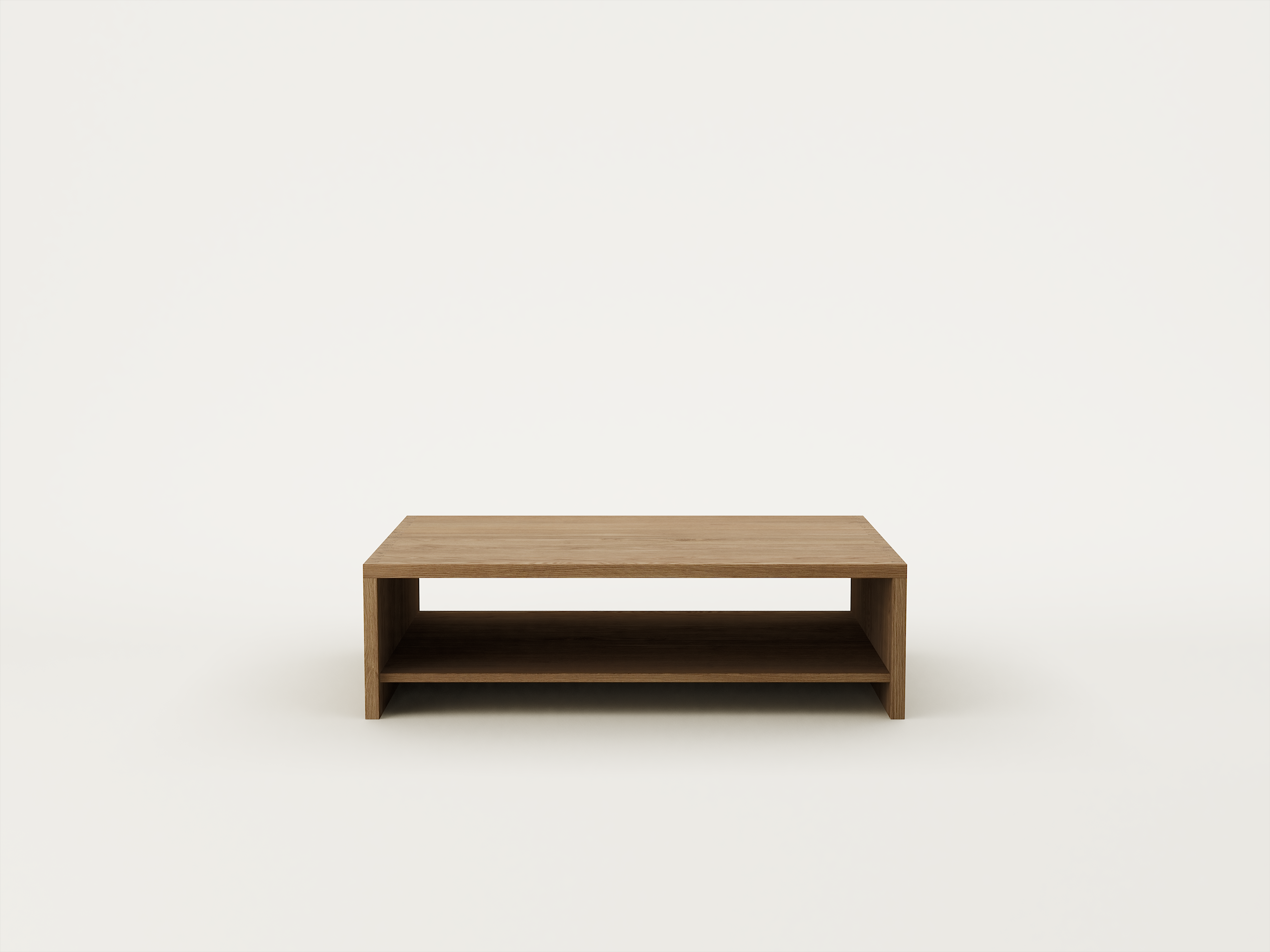 Featuring a distinct straight dovetail, or tenon detail, Tenon nods to traditional timber construction. A generously sized coffee table, with a functional shelf.