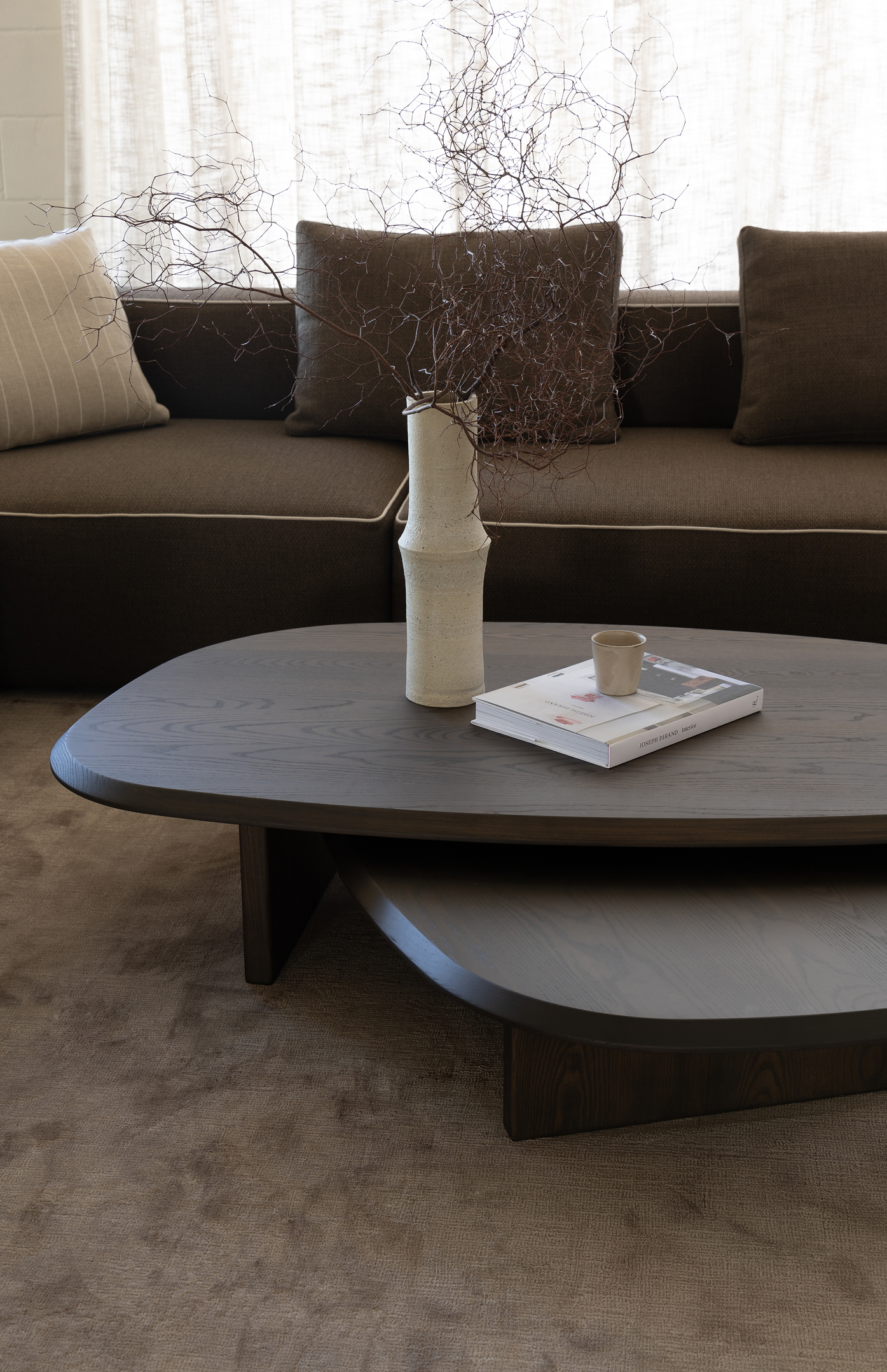 Crafted from solid timber, Wynn features organic silhouettes with a refined chamfered edge detail. A large format coffee table set that can be nested together for a layered look.